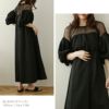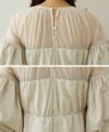 デコルテ周りはシアー素材ですっきり見せ&抜け感をプラス。ボリューミーな袖が華やかでお呼ばれシーンにもぴったりな1着です♪