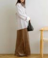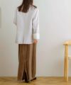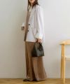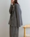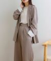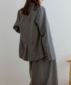 同素材のスカートと合わせたセットアップスタイルもおすすめです。
