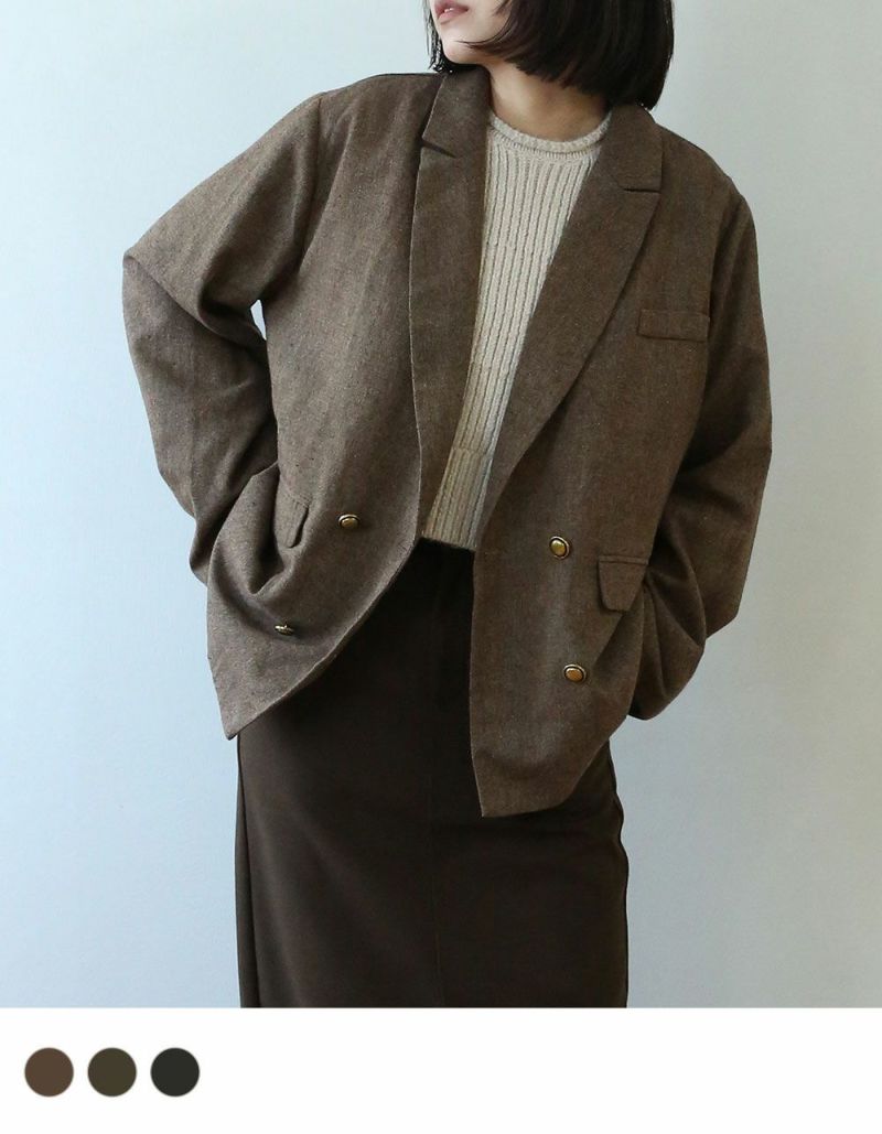 シーズンムードを高まるツイード素材のオーバージャケット。
