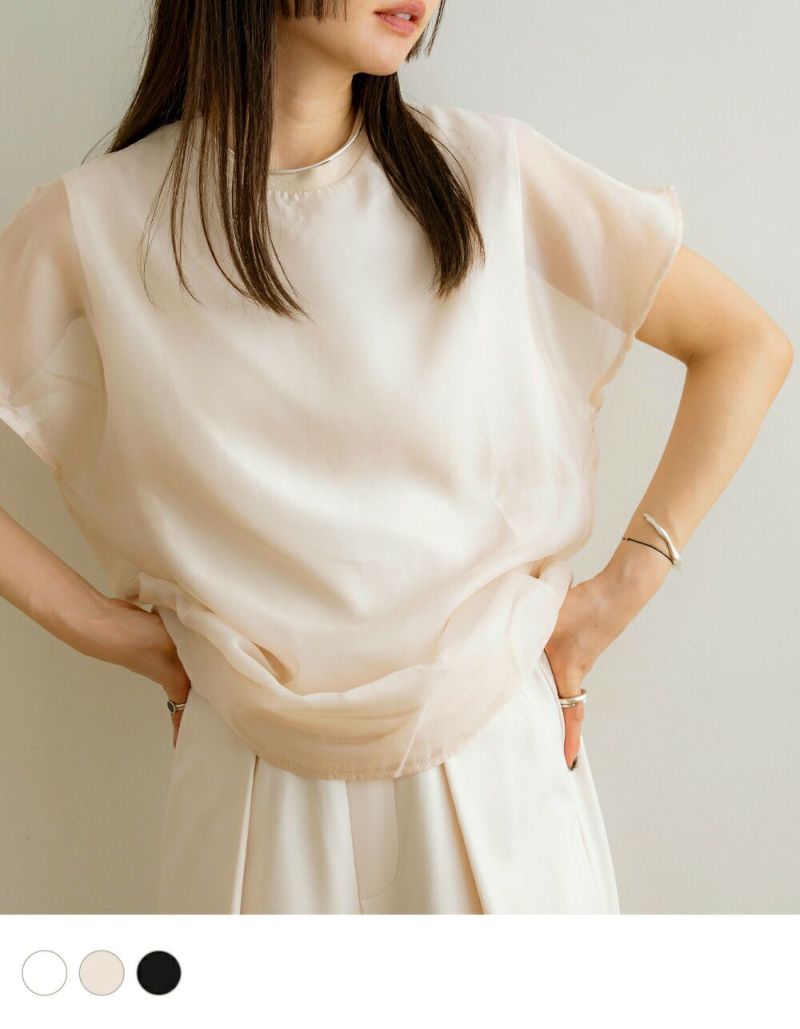 シアーフレンチスリーブトップス