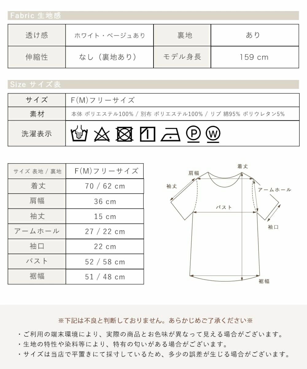 ・ポケットなし / 透け感ホワイトとベージュあり / 伸縮性なし / 裏地あり