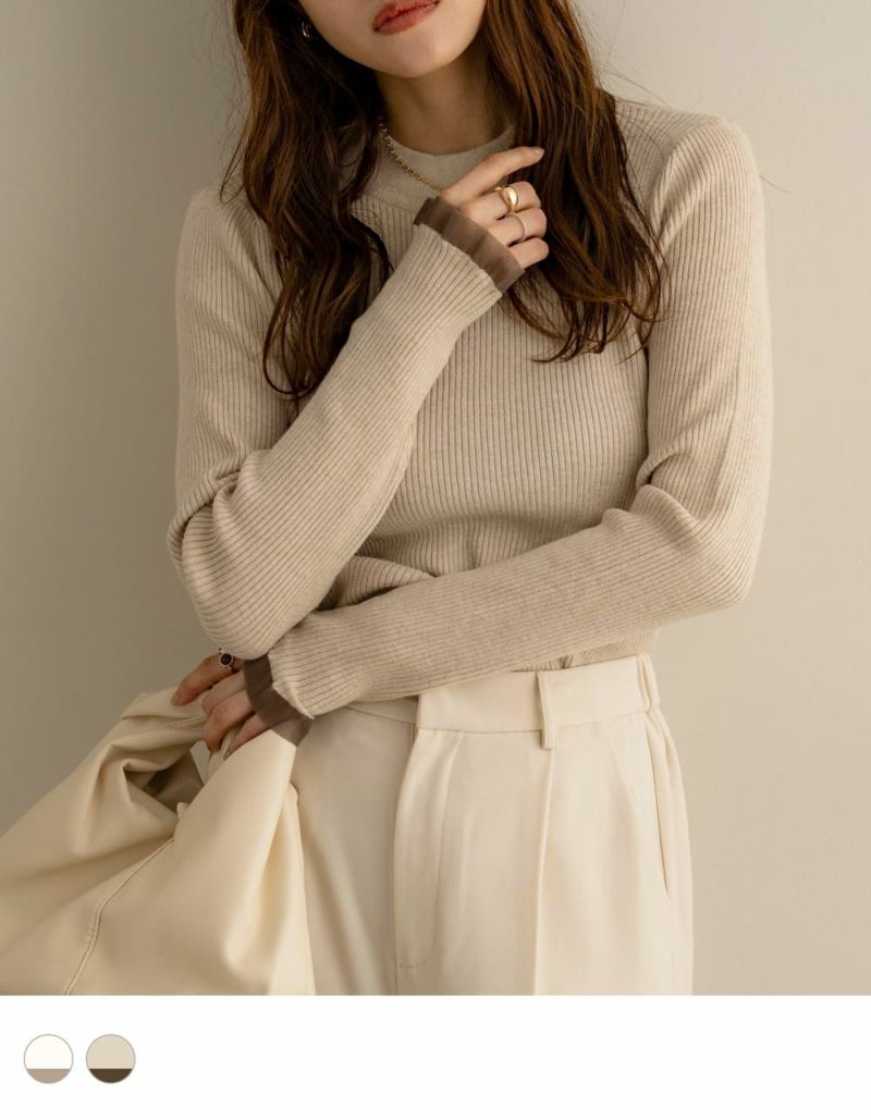 袖口の透け感が可愛い配色デザインが目を惹く、