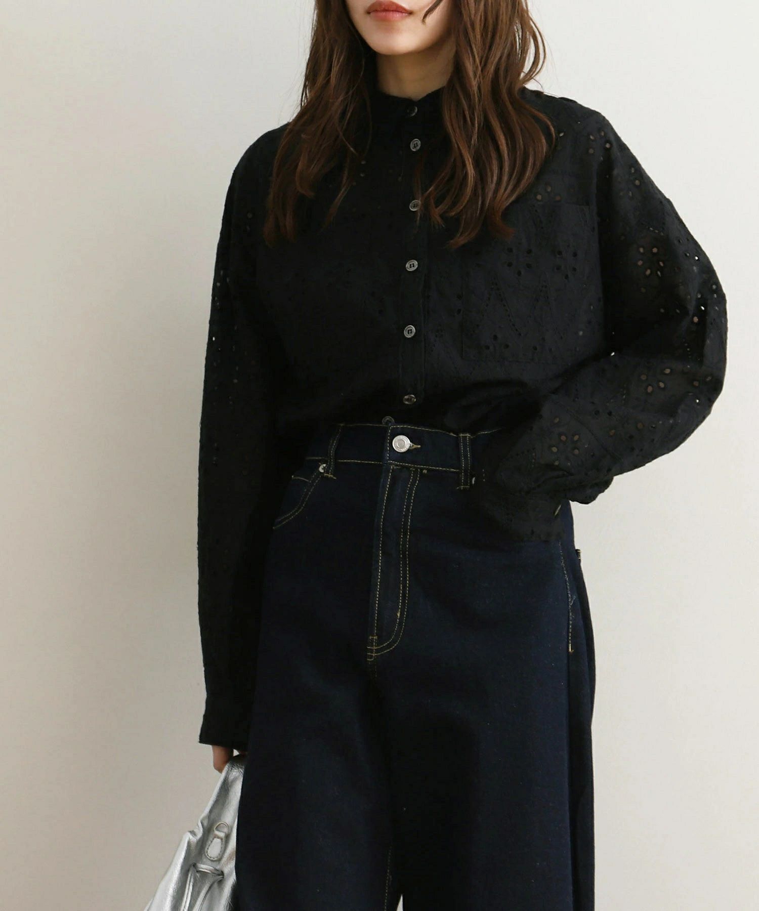 レイヤード風襟付きボリュームシャツ