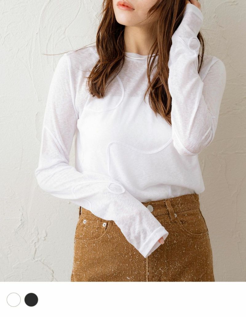 柔らかい肌触りと表情のあるスラブカットソー。ニュアンスがお洒落なコード刺繍とほどよい透け感が、インナーとしても1枚で着てもお洒落な1着です♪