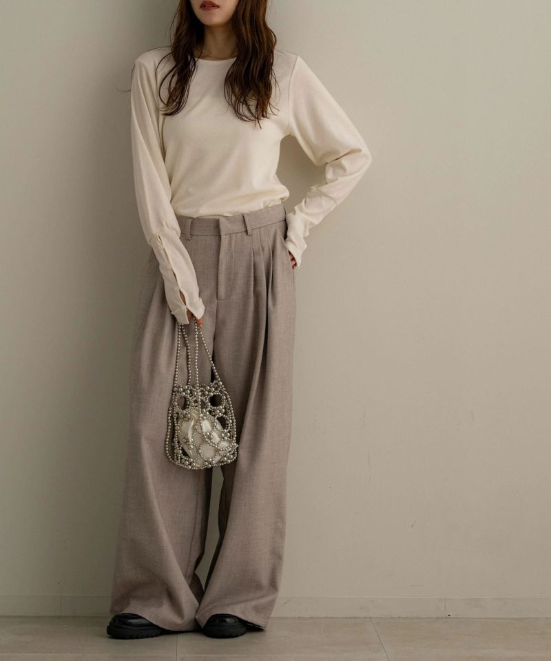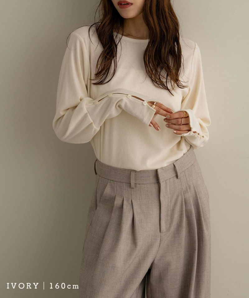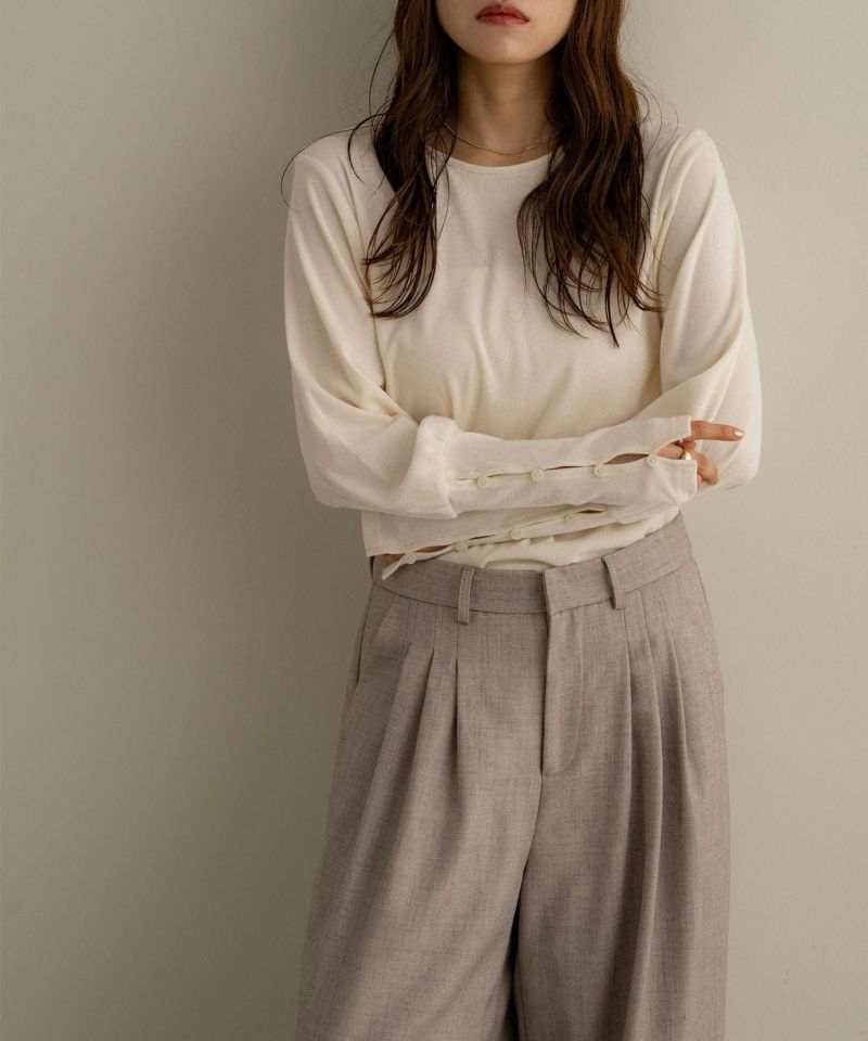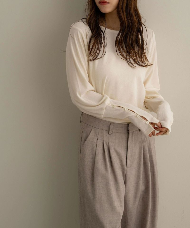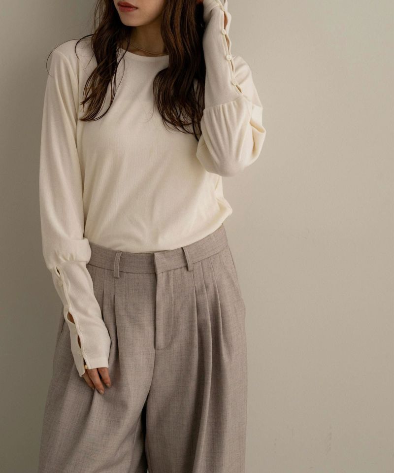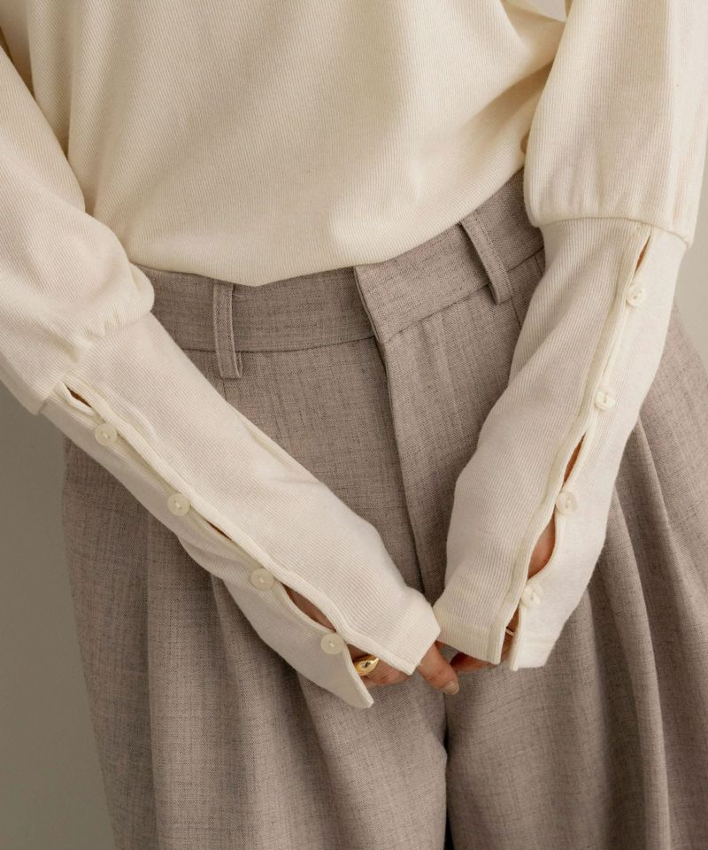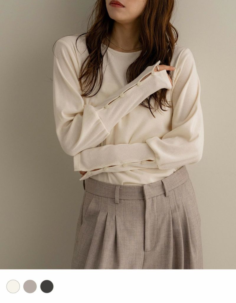 袖ボタンカットソートップス