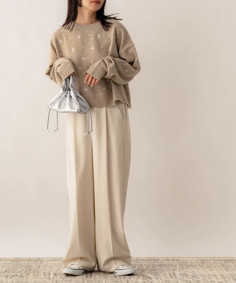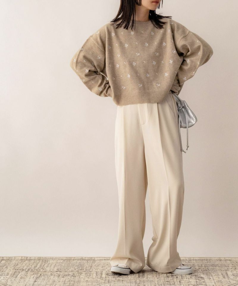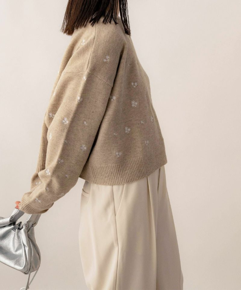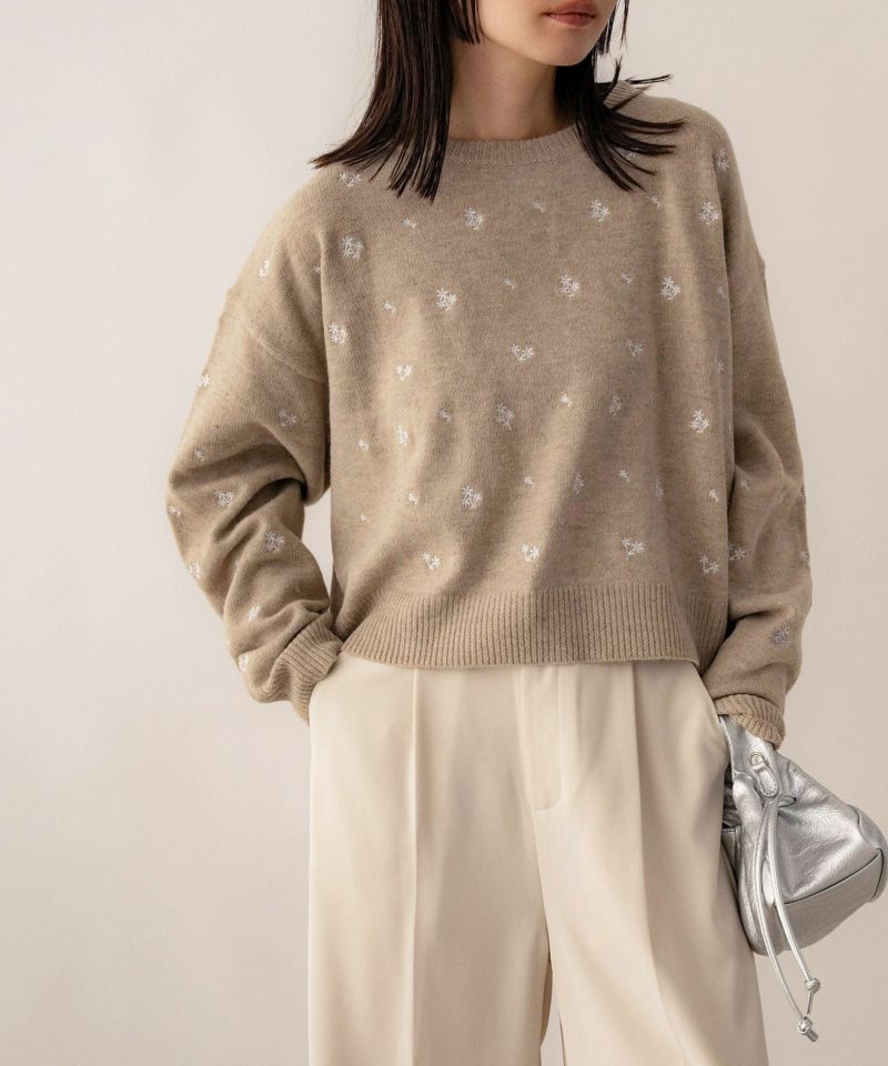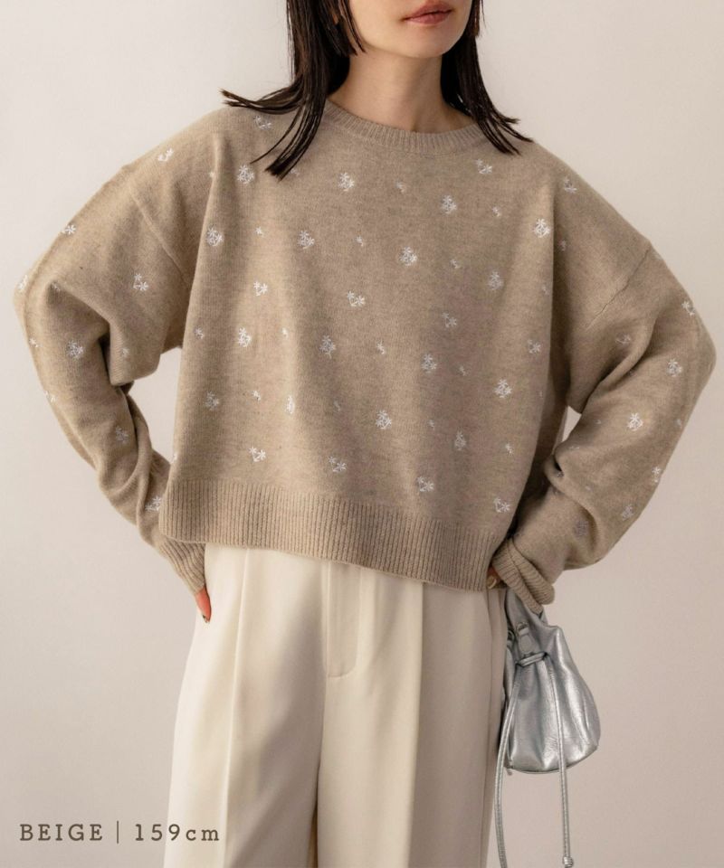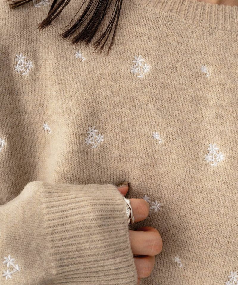 フラワー刺繍ニットプルオーバー