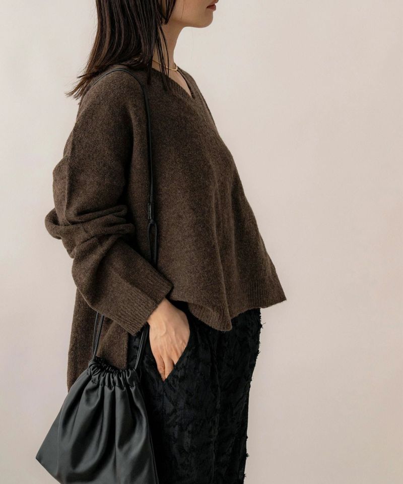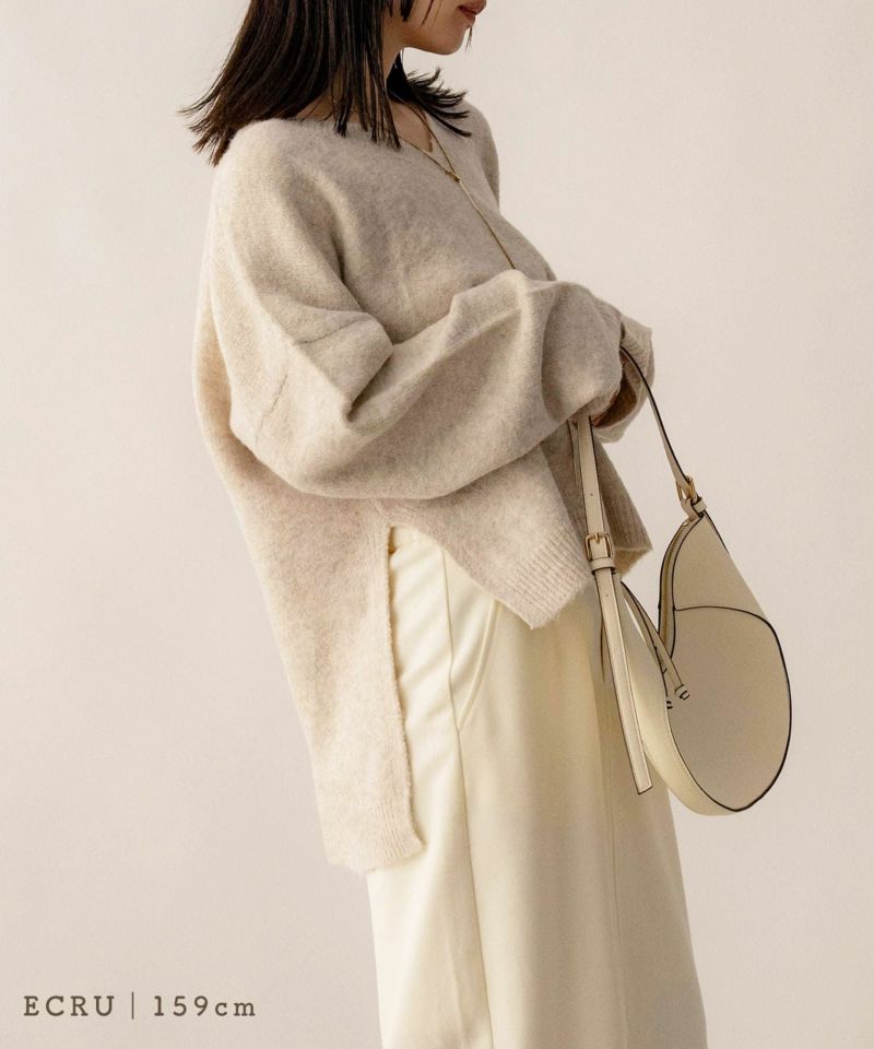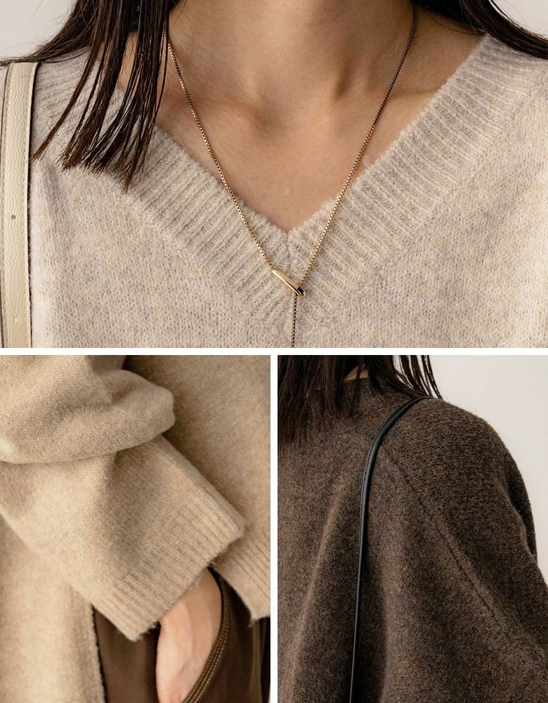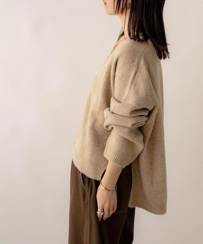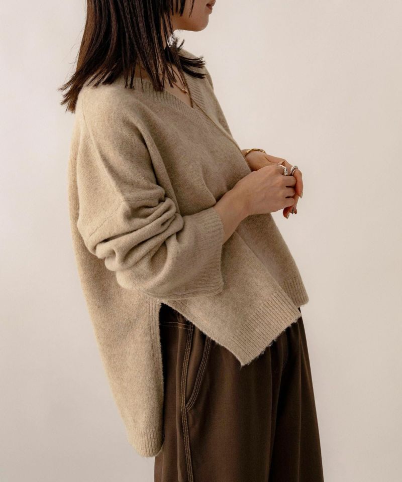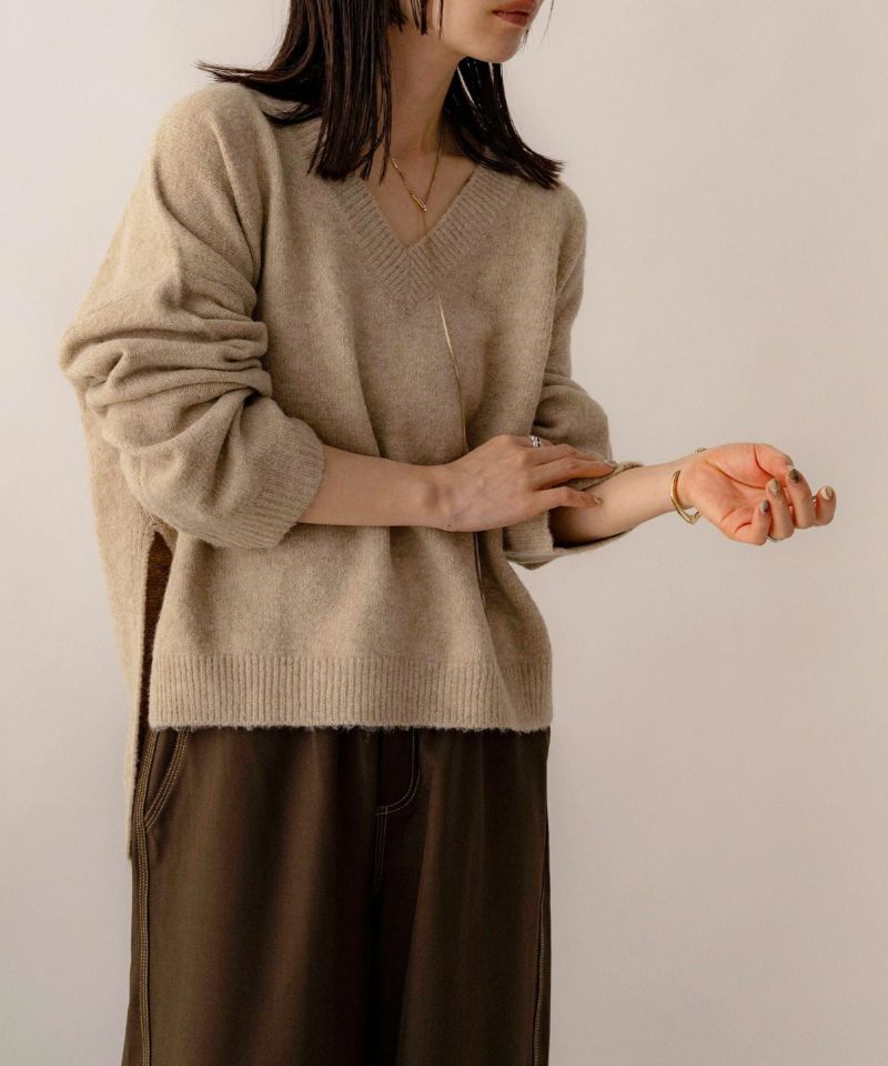 Vネックスリット入りニット