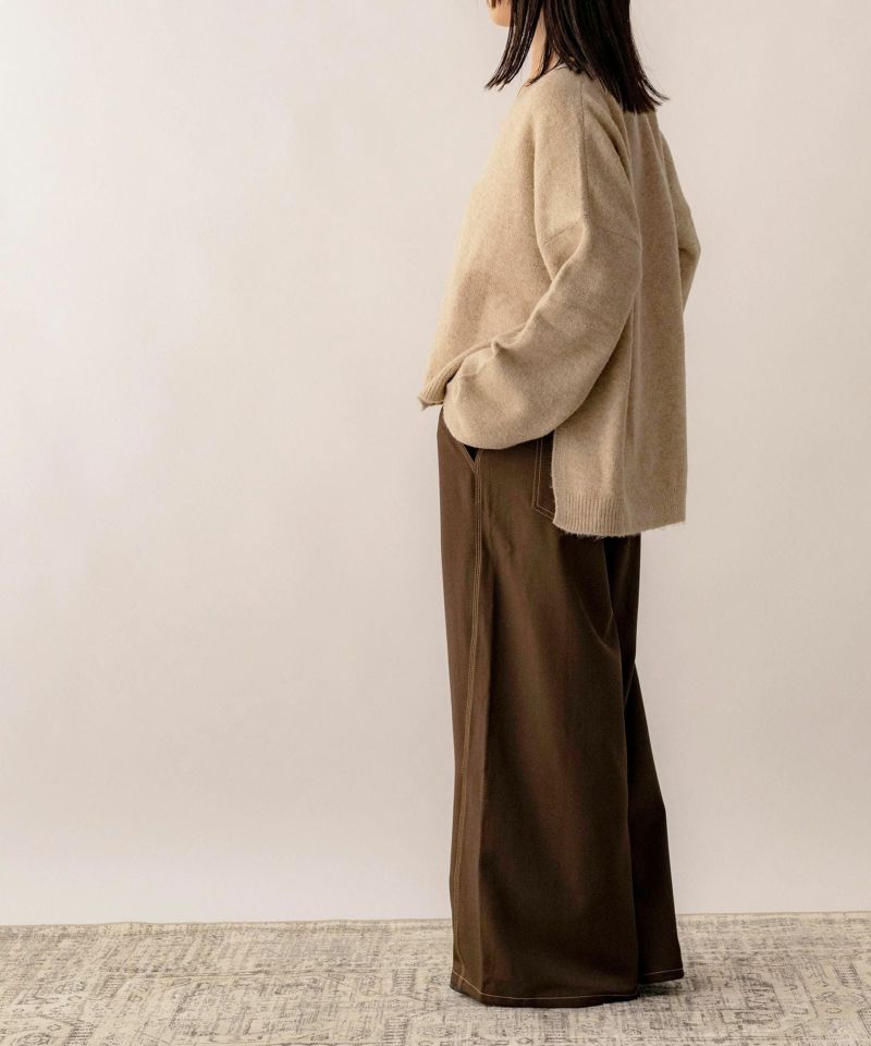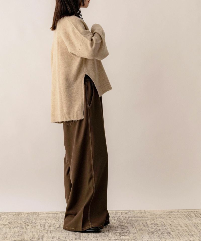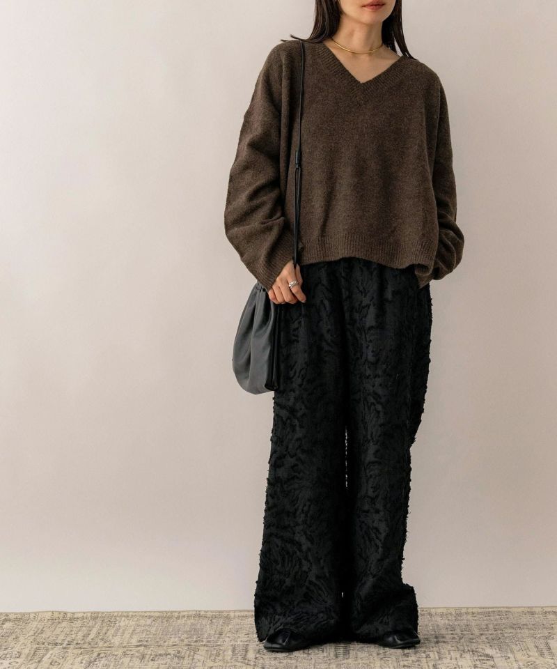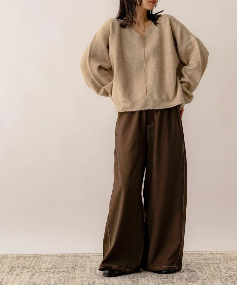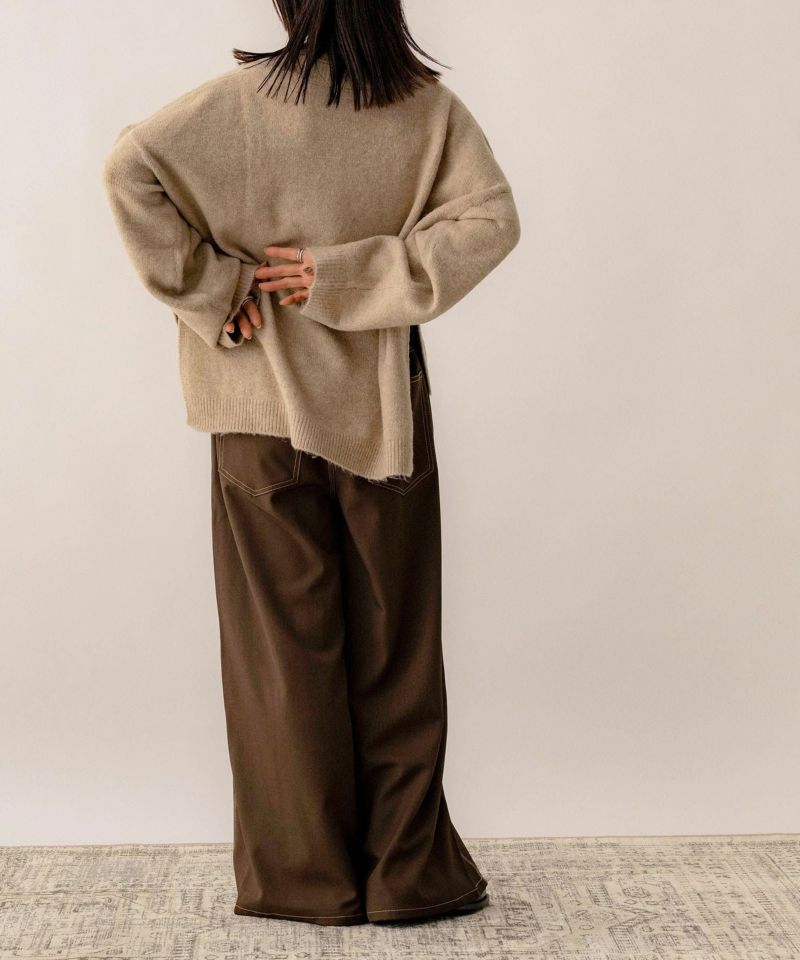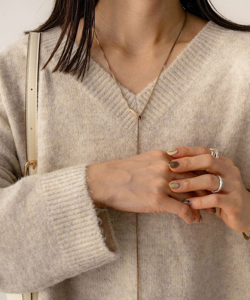 Vネックスリット入りニット