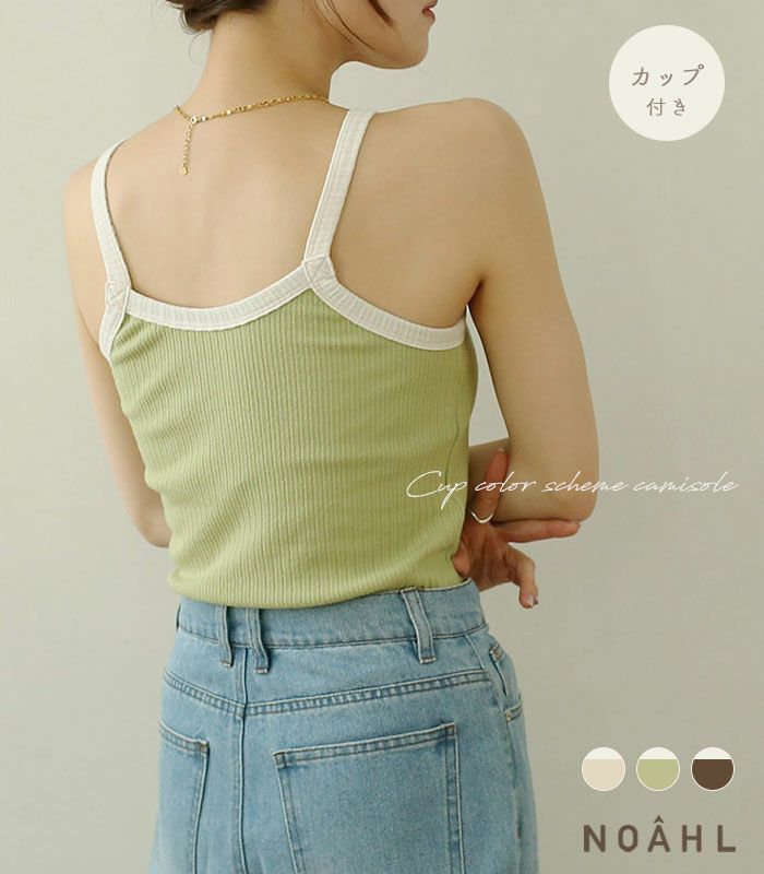 カップ付き配色キャミソール