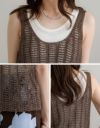 ナチュラルな透かし編みが涼しげなMIXサマーニットタンクトップ。