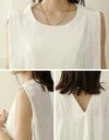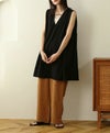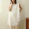 肩のタックデザインがノースリーブでも二の腕をカバー◎チュニック丈が縦ラインを強調して、すっきりとしたシルエットに。ネックデザインを気分で変えられる前後2way仕様。
