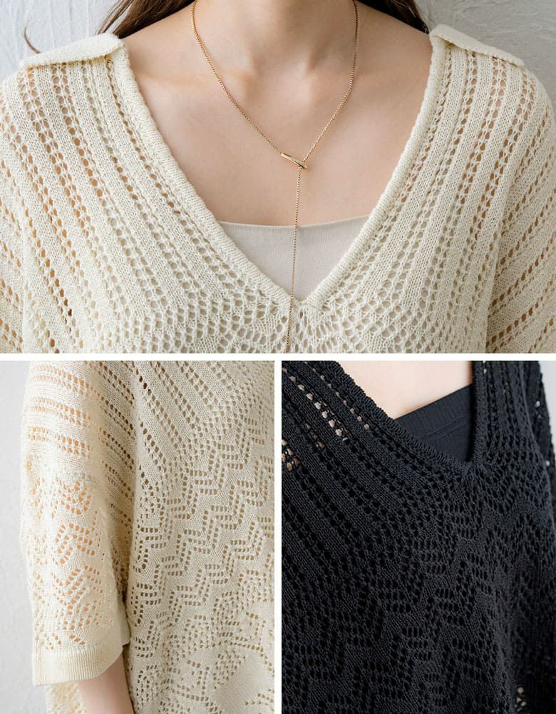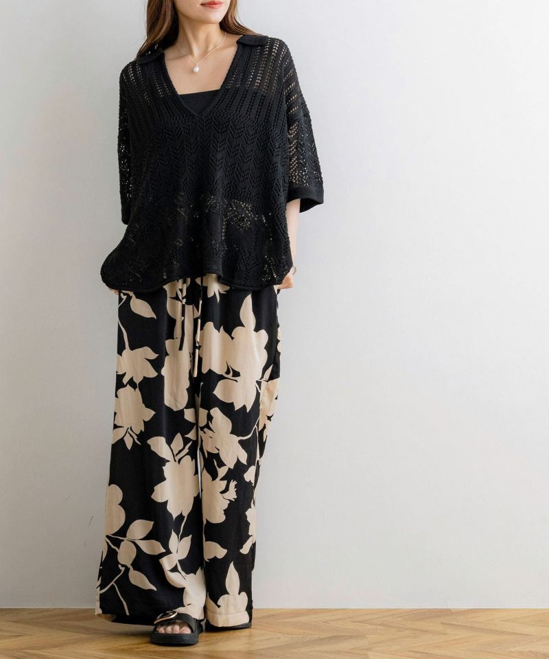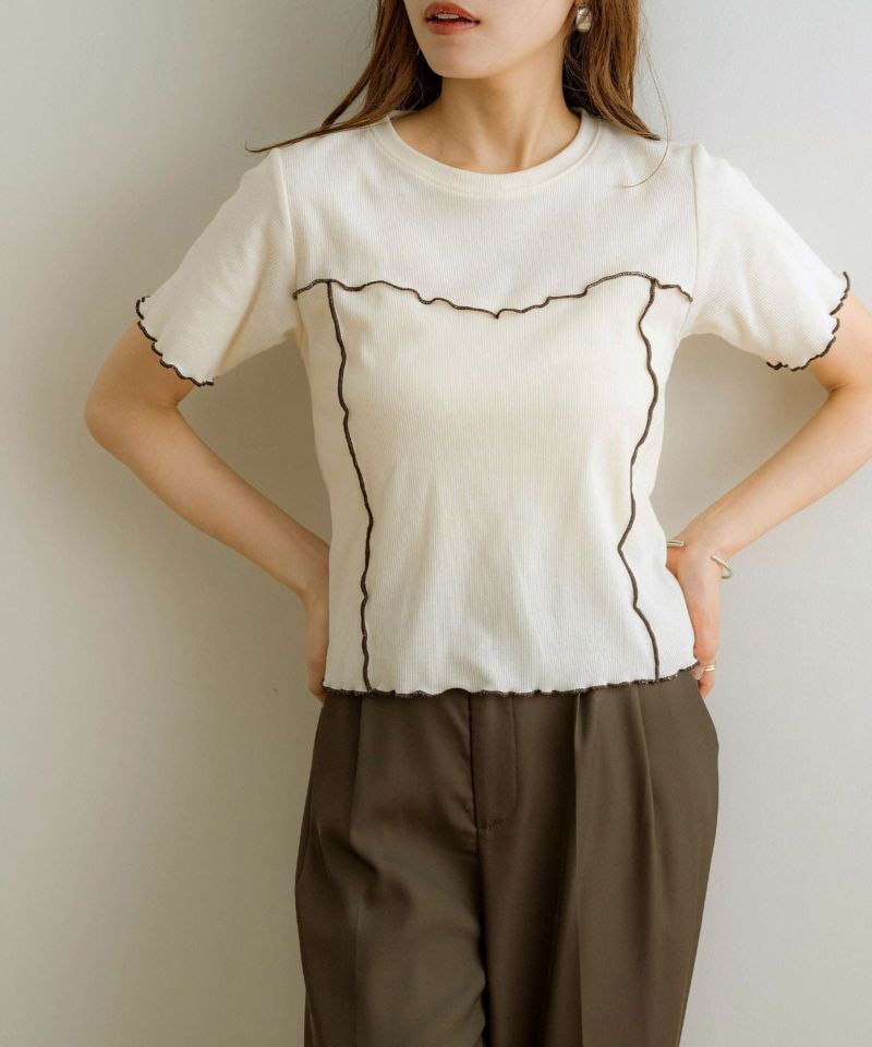 《accoさんコラボ》ストレッチコットンヘンリーネックTシャツ