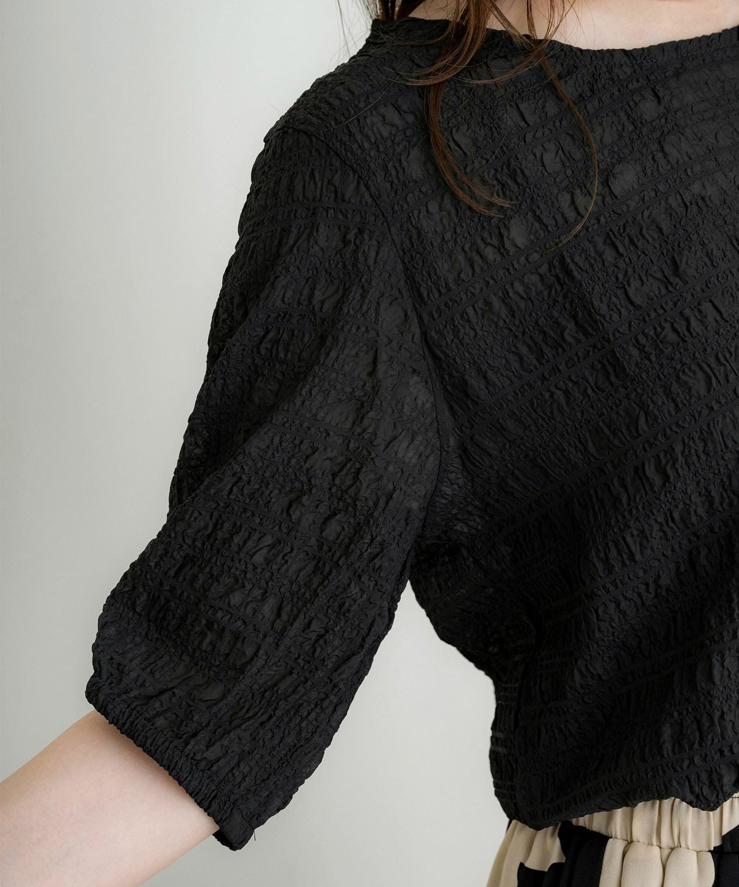 チュールシャーリングブラウス