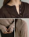 程よいシアー感がオトナ可愛いヘンリーネックロンT。