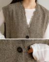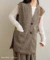 サマーツイードが華やかなボタンジレ。裾や襟元のフリンジデザインが今年らしく、深めのVネックがオーバーシルエットでもすっきり見え◎シアーのトップスやタンクトップにレイヤードするだけで春らしくお洒落に決まる1着です♪同素材の「サマーツイードタックワイドパンツ」とセットアップでの着用もおすすめ◎