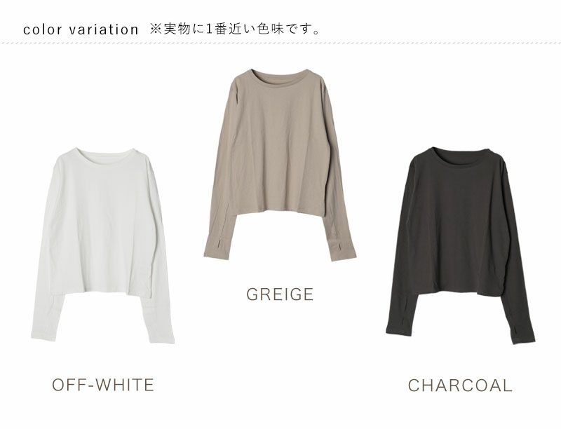 指穴開き長袖シンプルカットソー