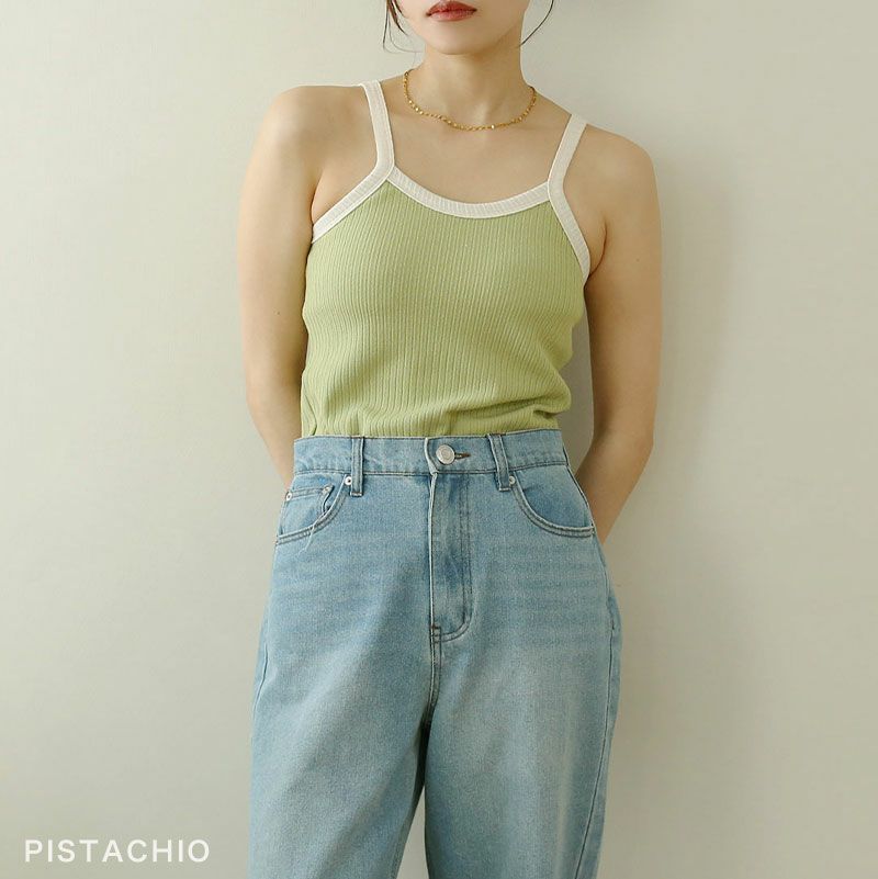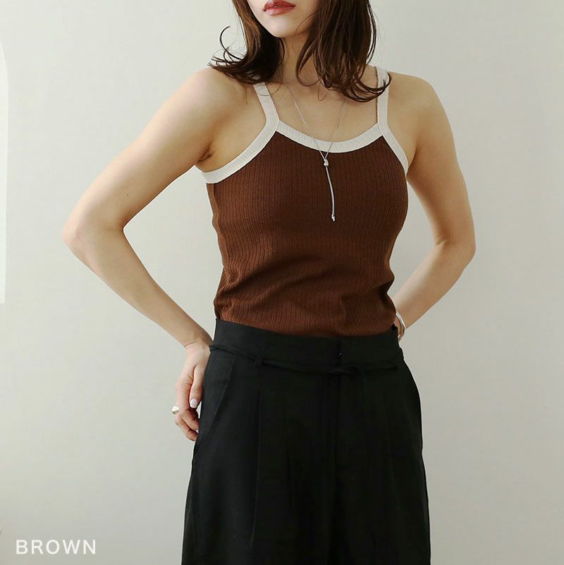 カップ付き配色キャミソール