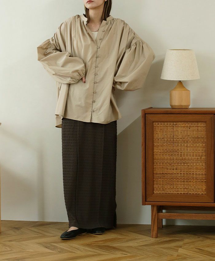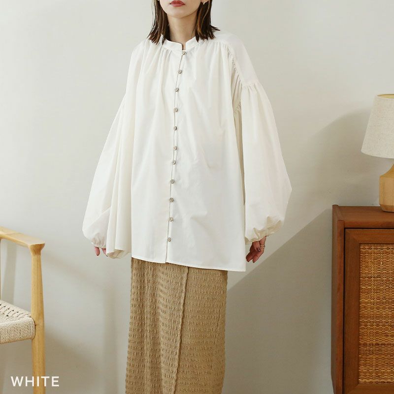 サイドボタンボリュームブラウス