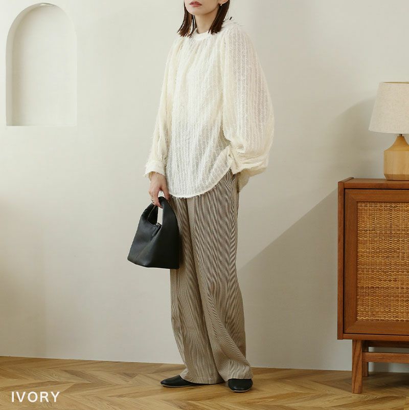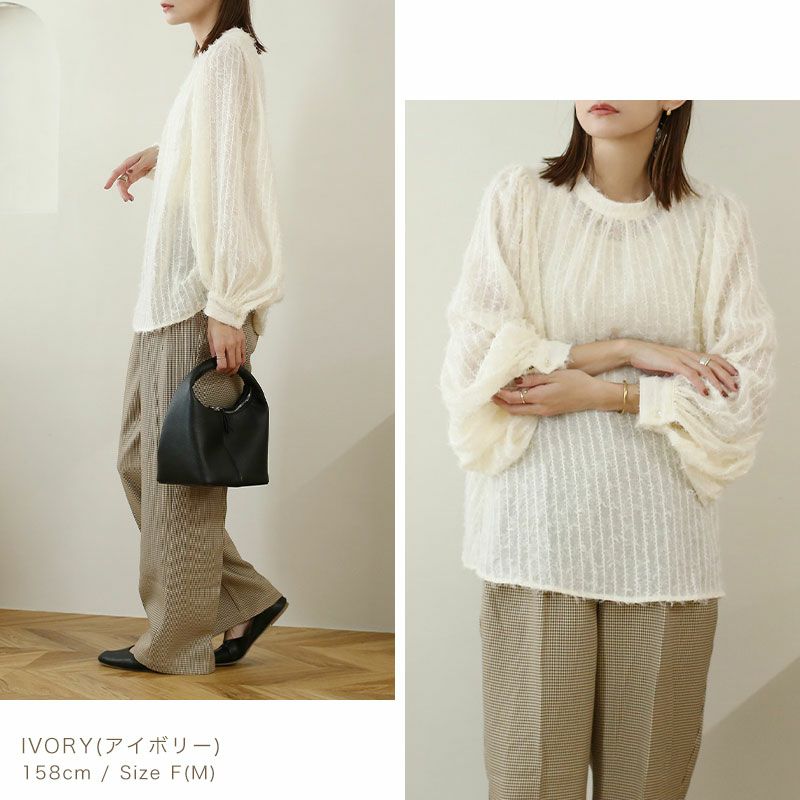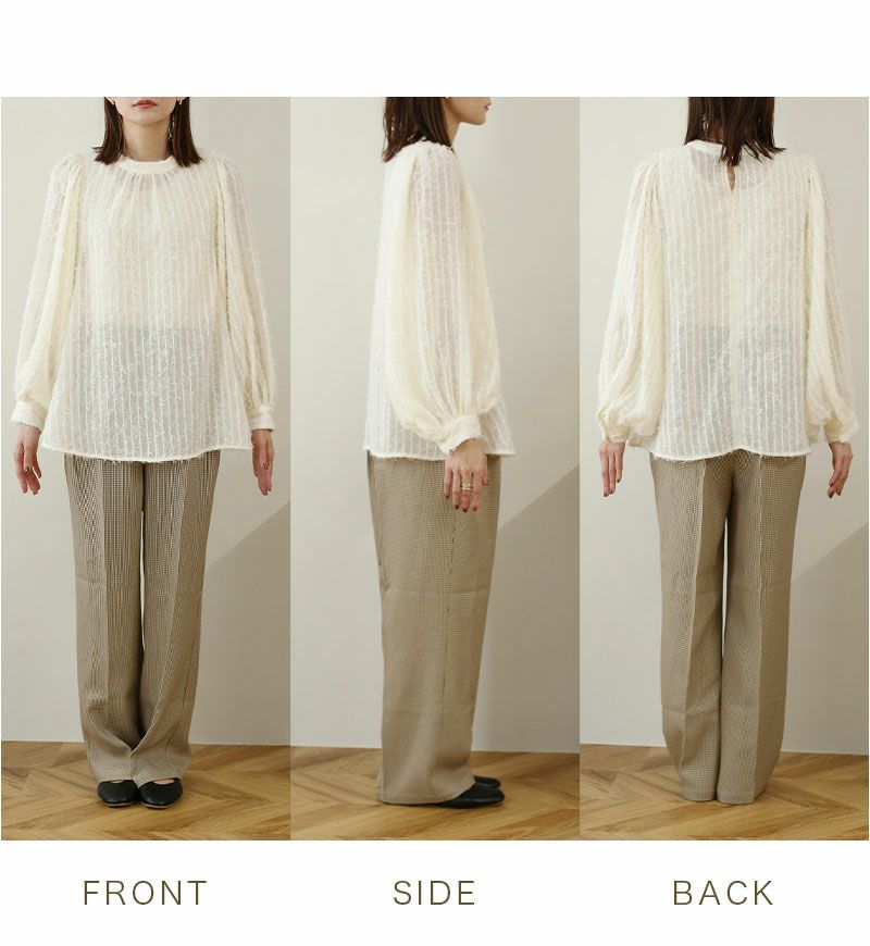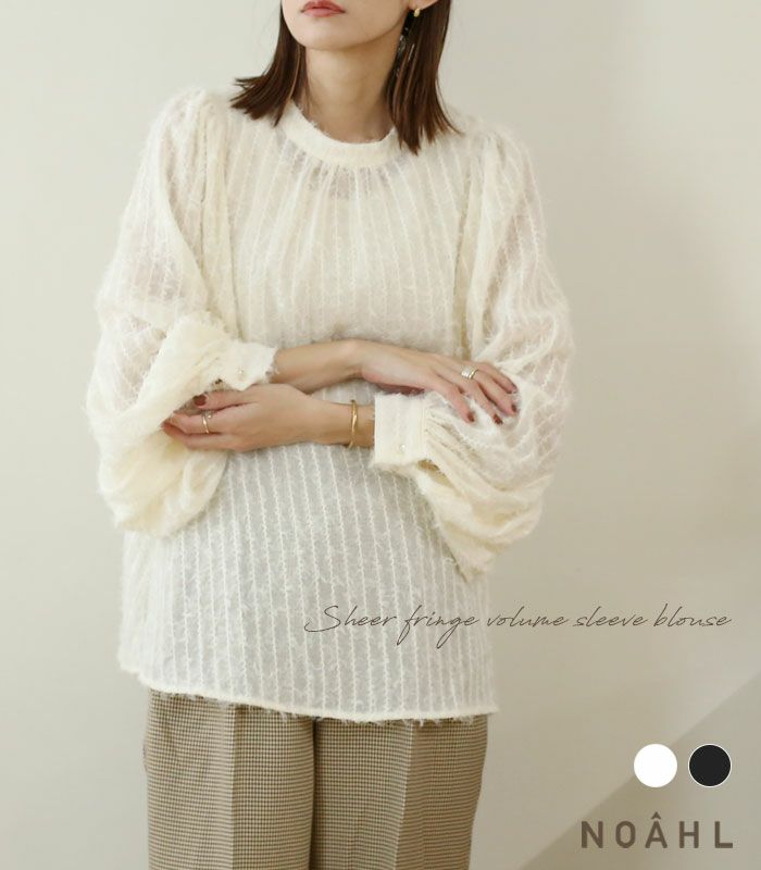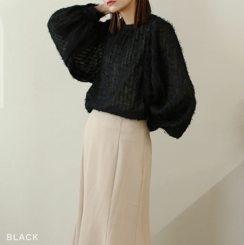 シアーフリンジ袖ボリュームブラウス