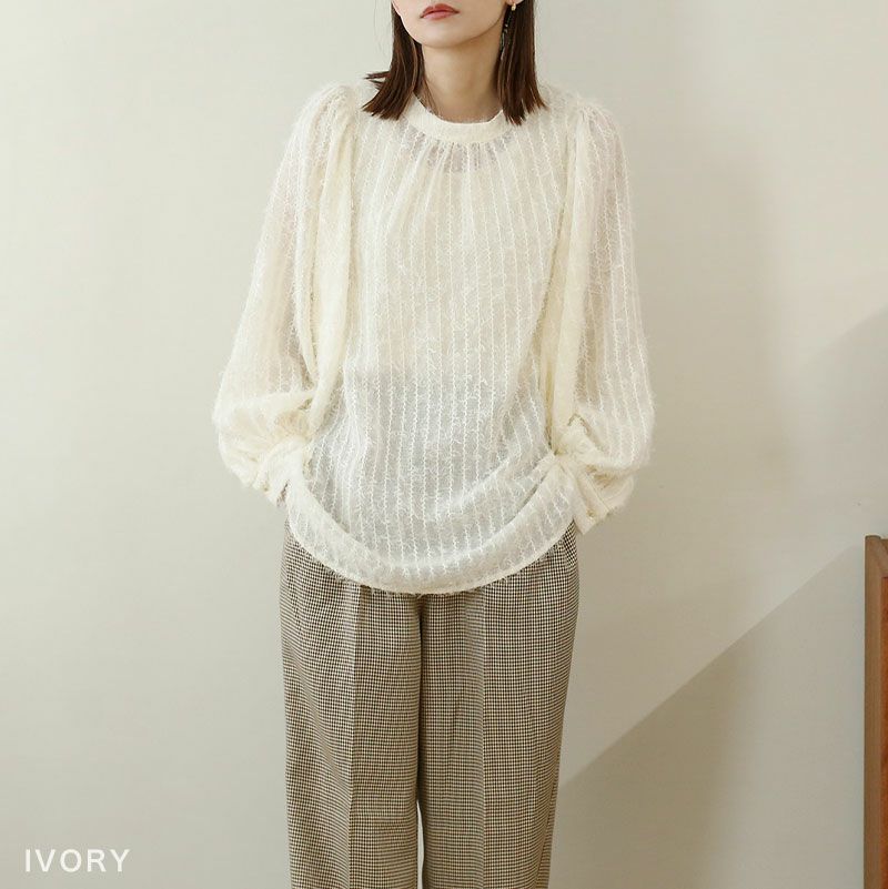 【メール便】ボリュームスリーブシアーブラウス