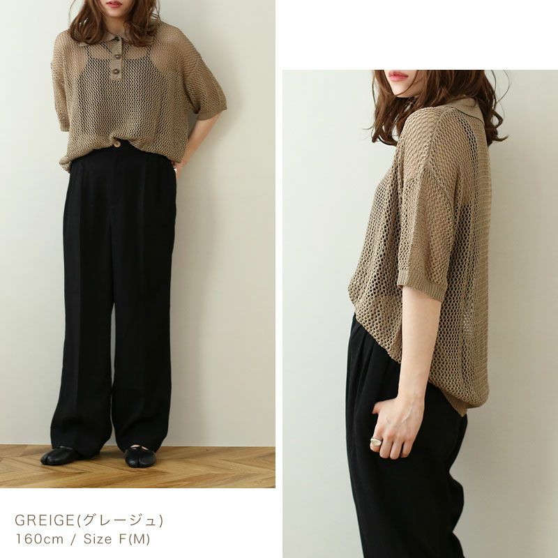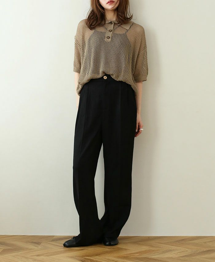 透かし編みポロトップス