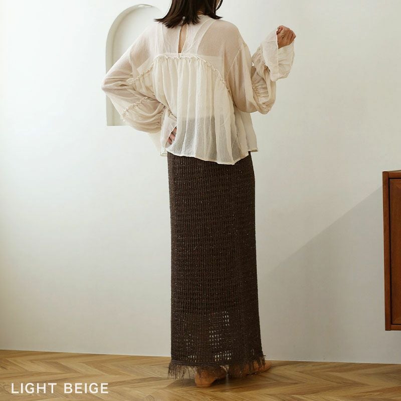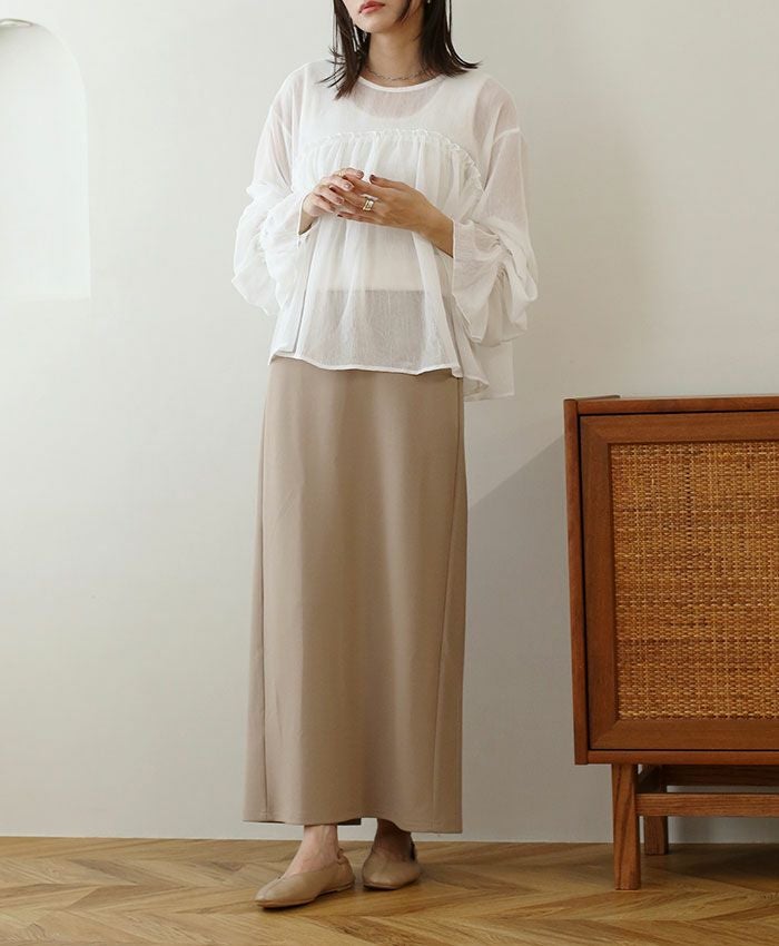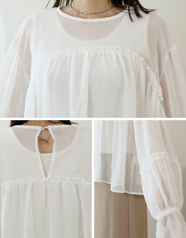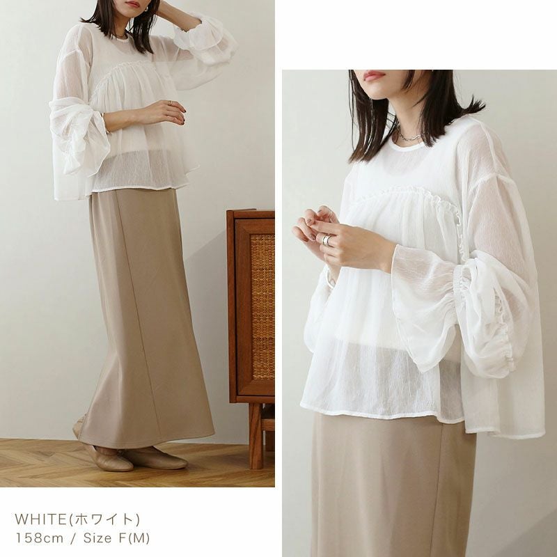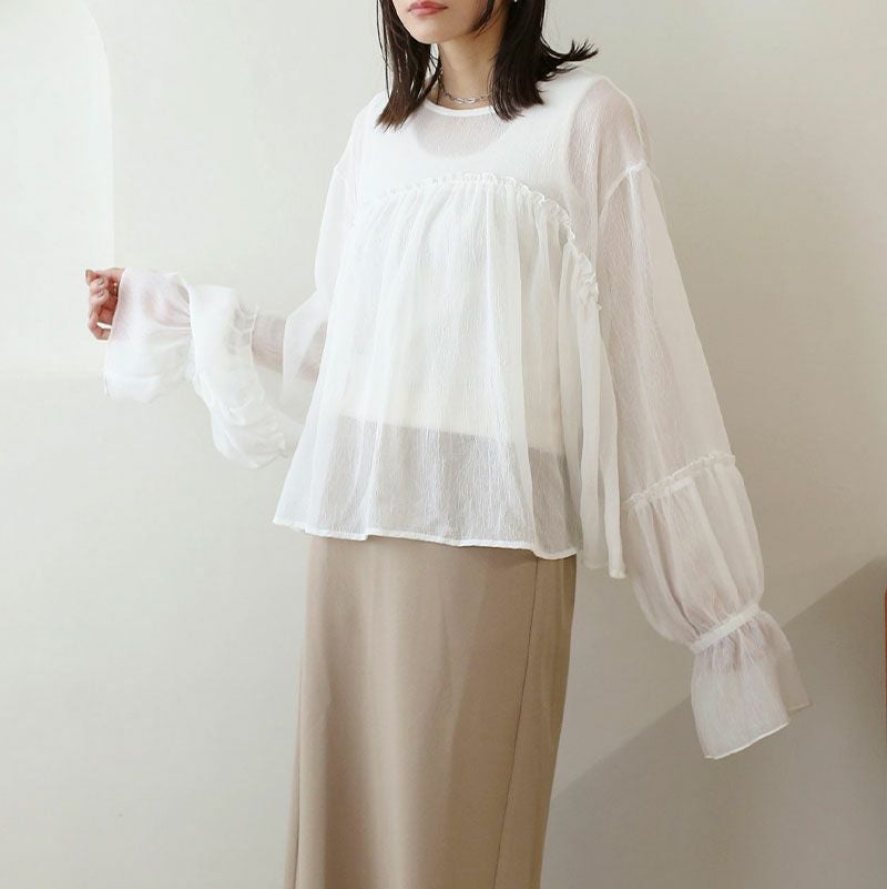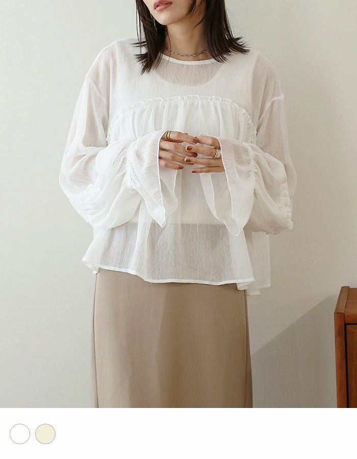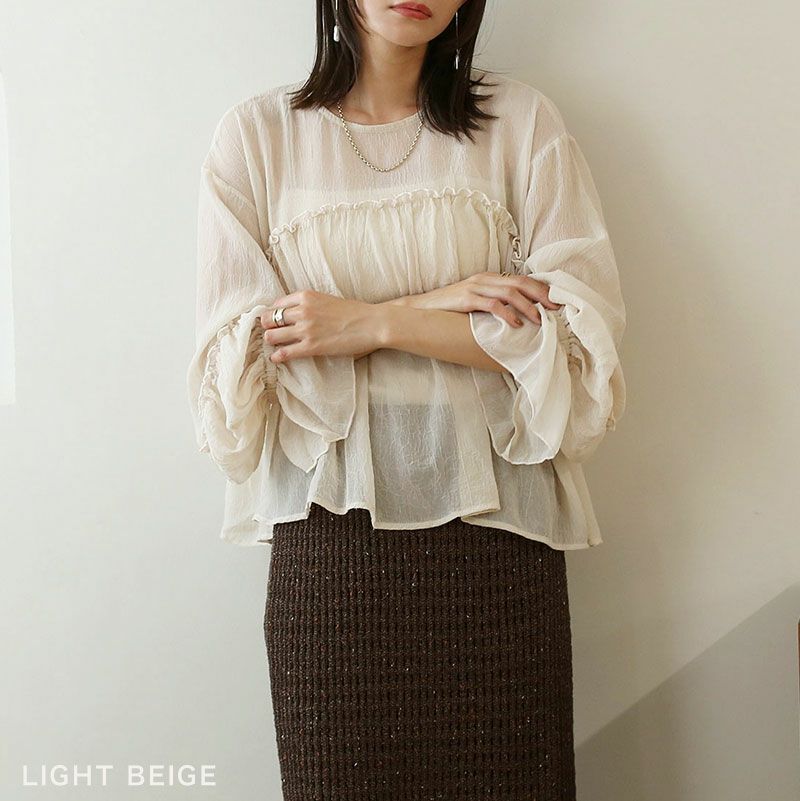 シアー楊柳ギャザーブラウス