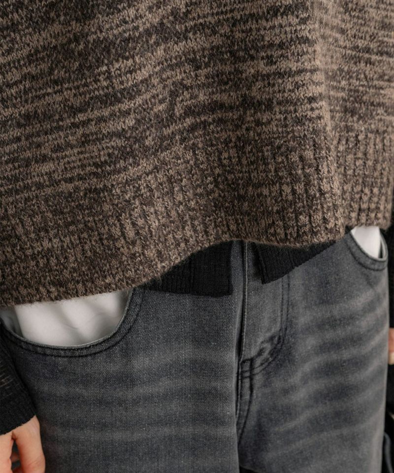 Vネックスリット入りニット