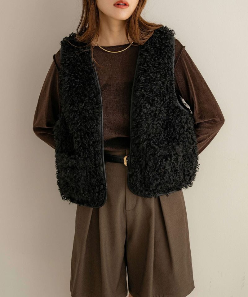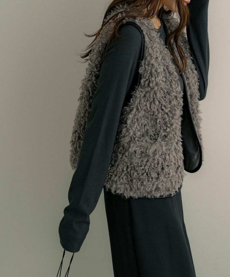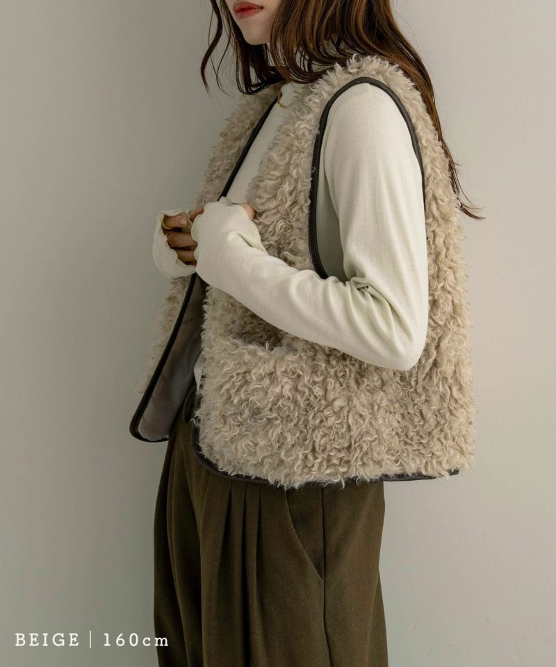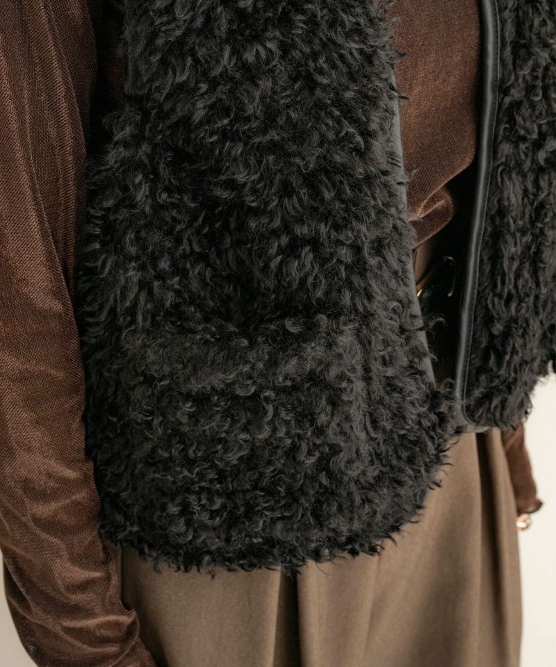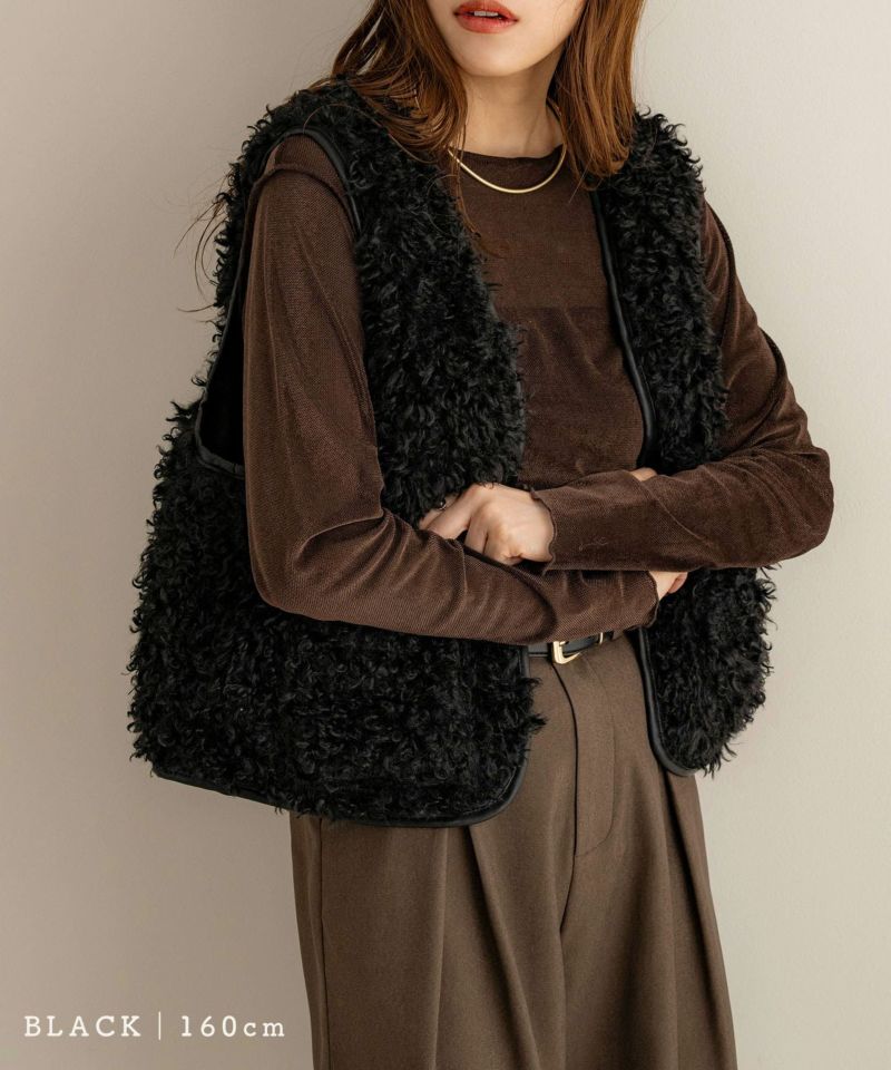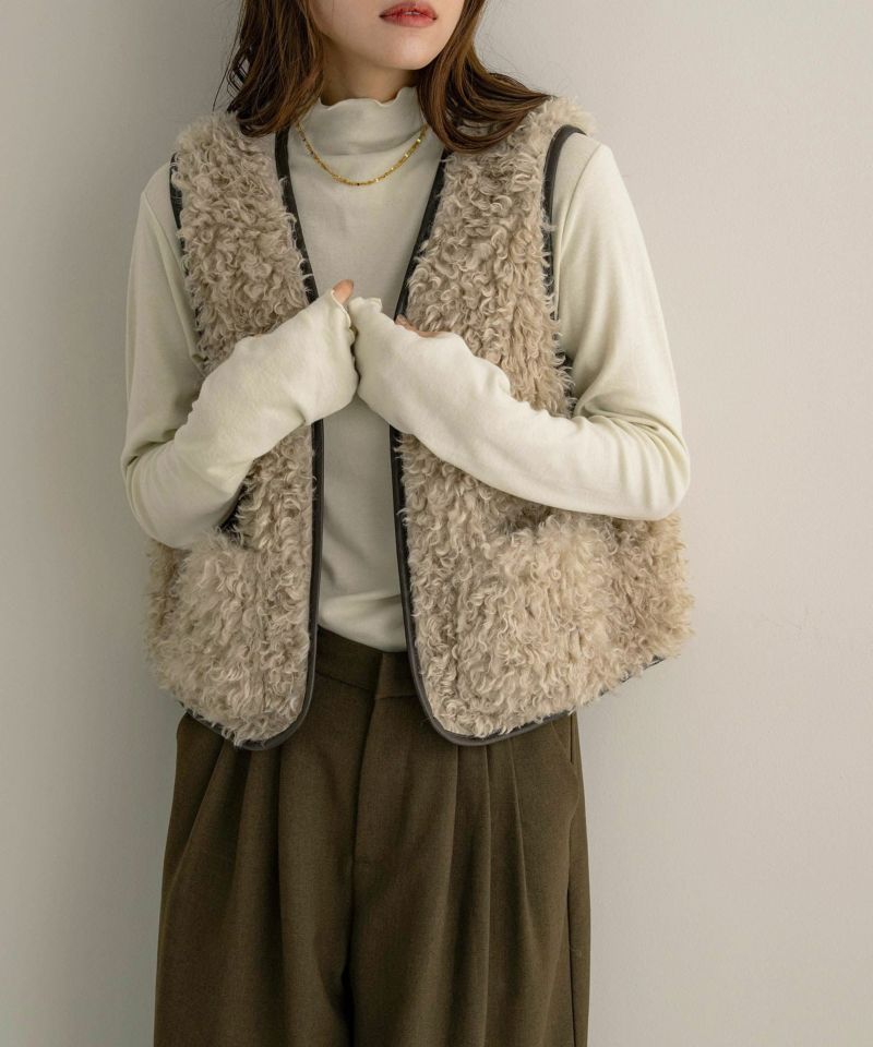 レザーパイピングファーベスト