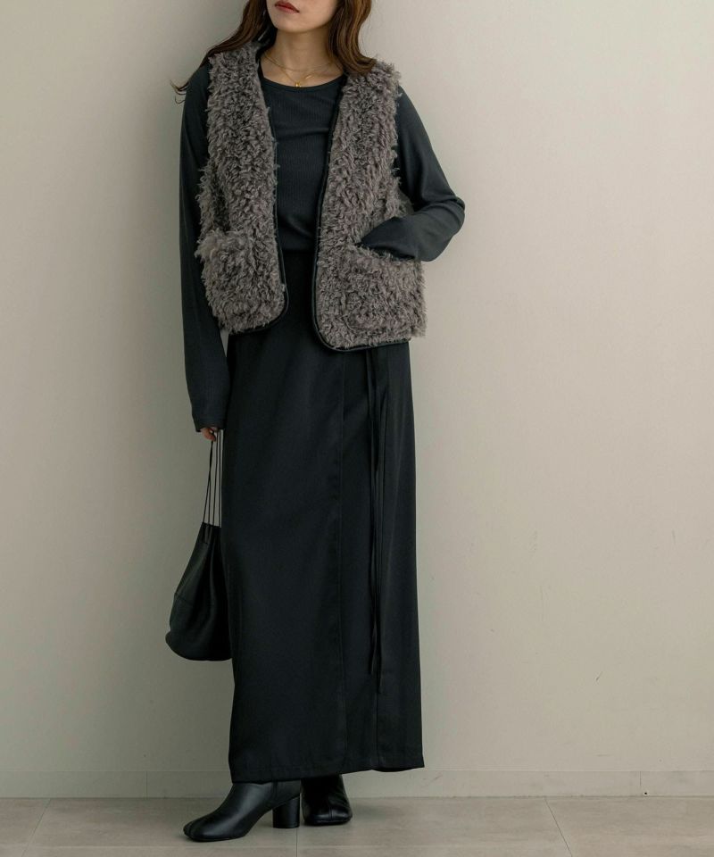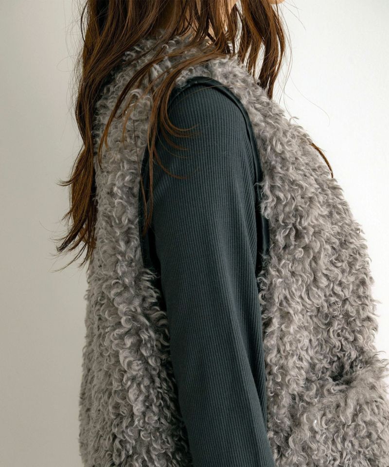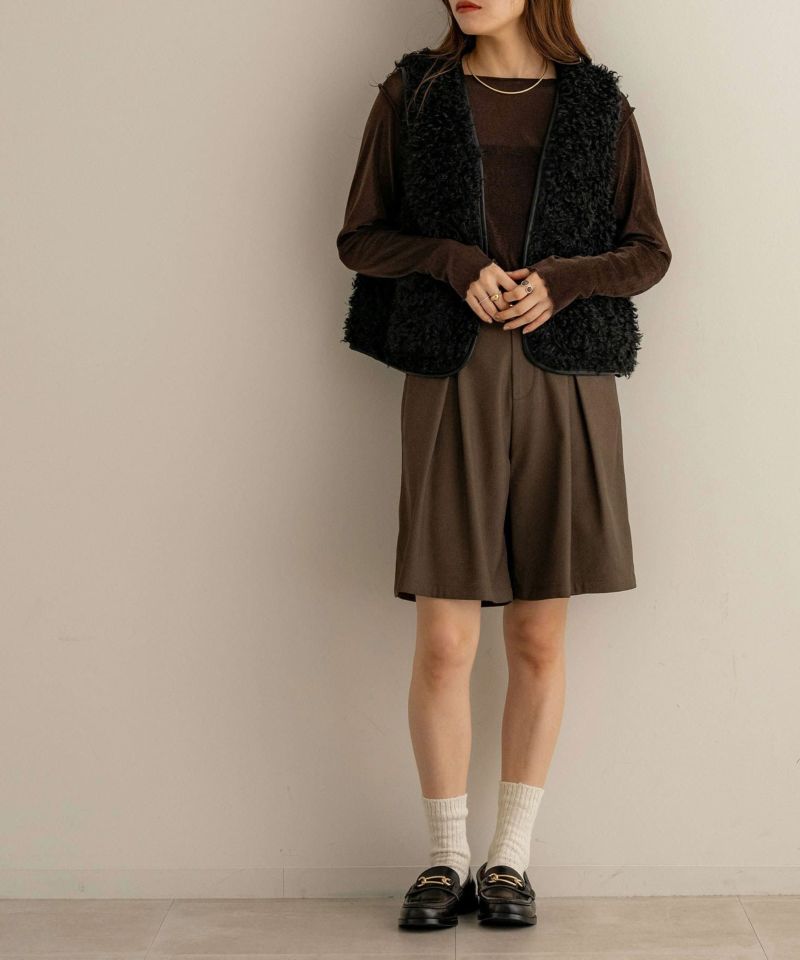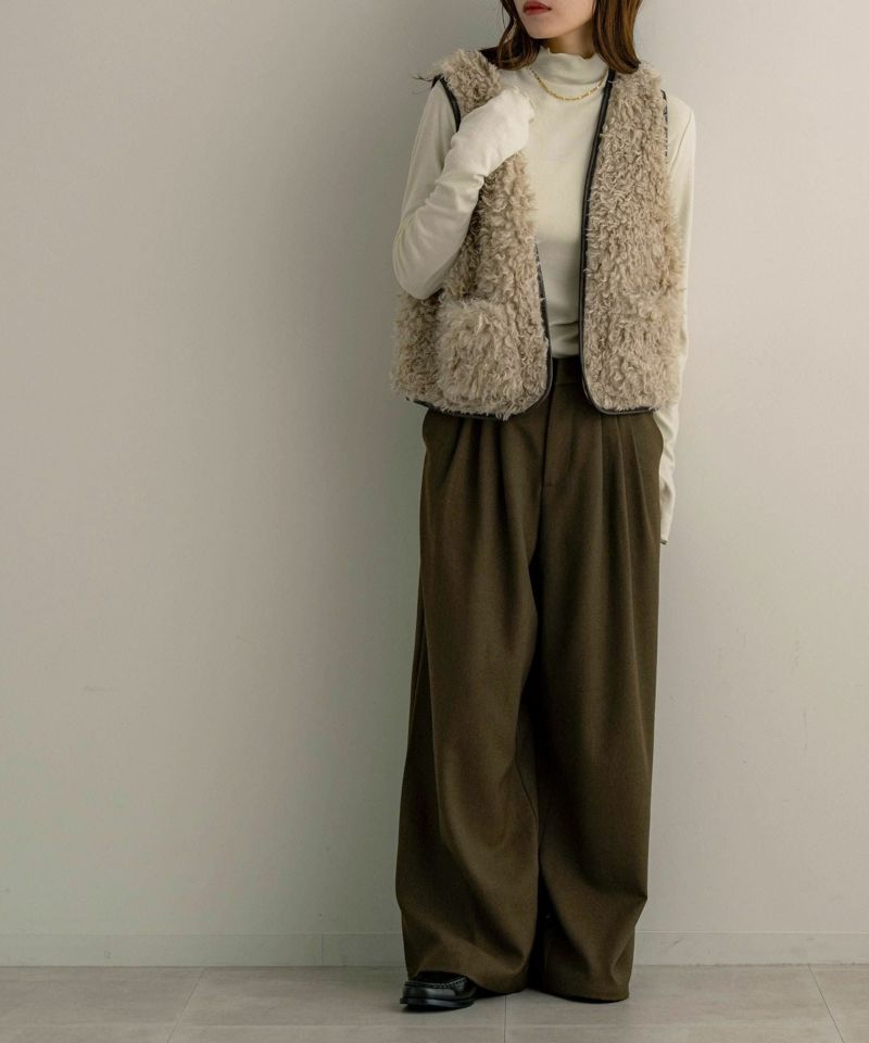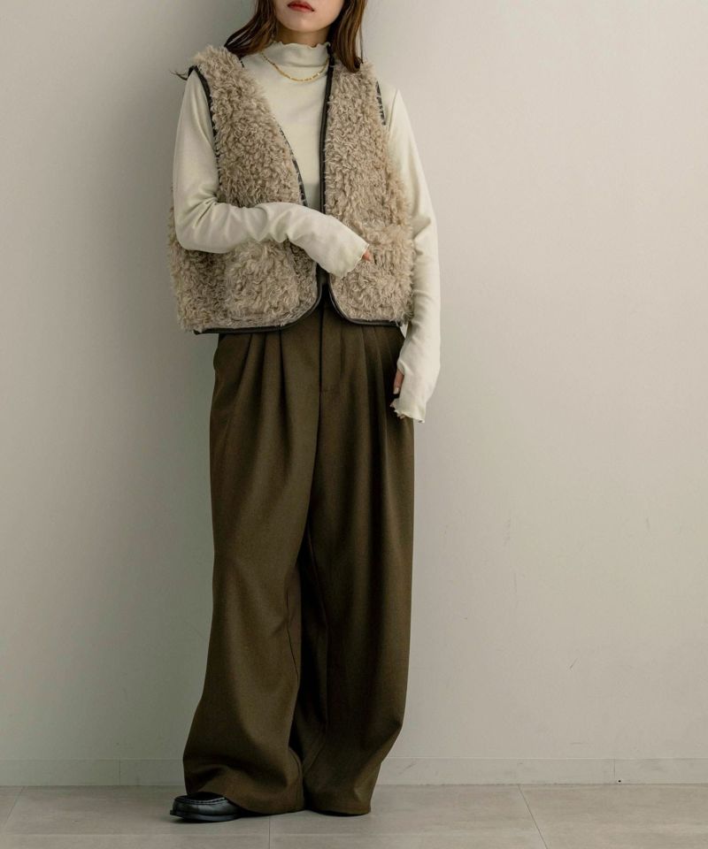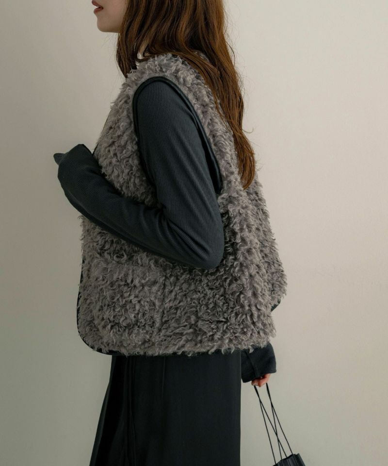 レザーパイピングファーベスト