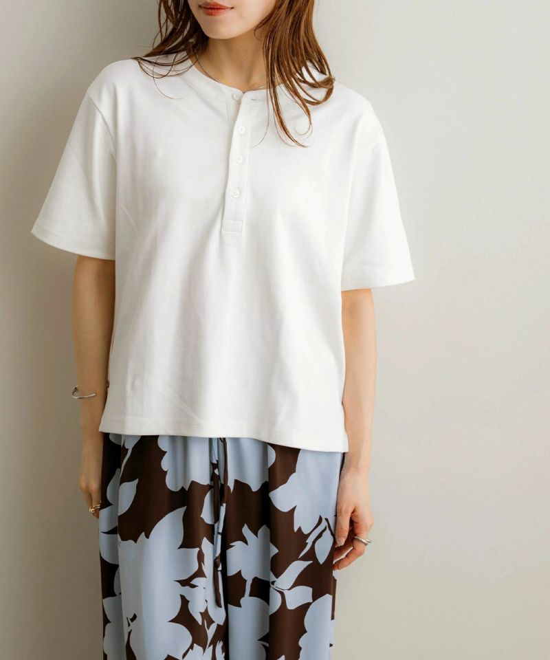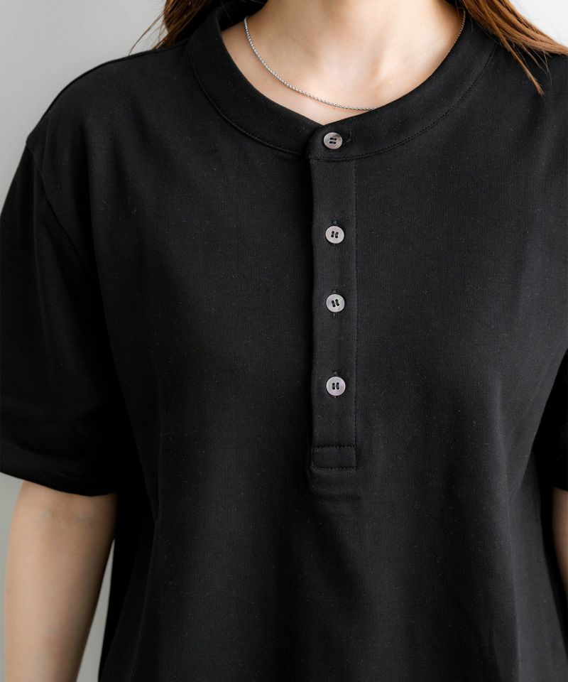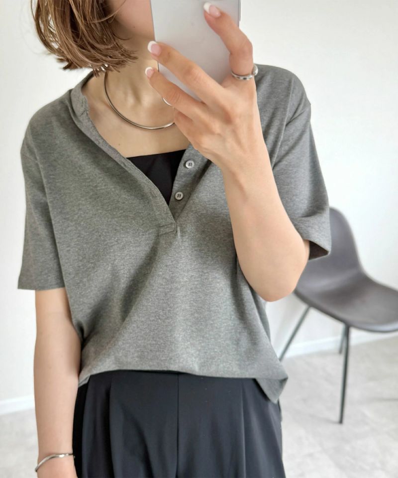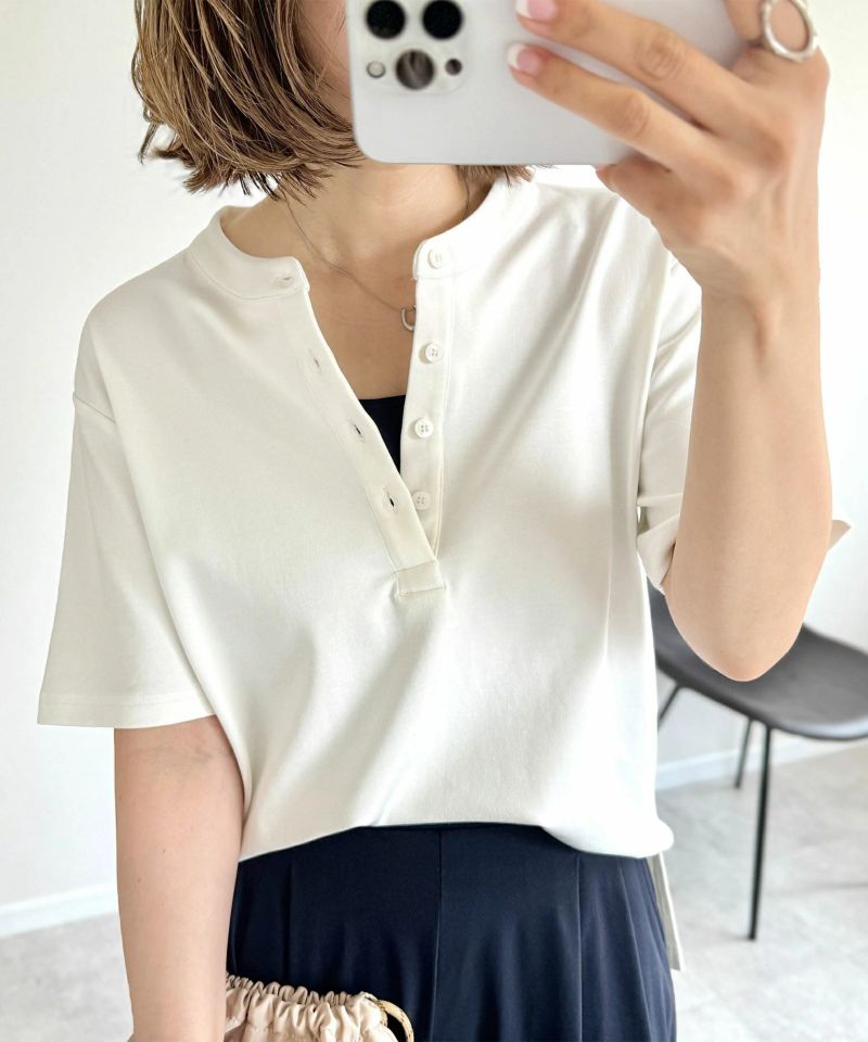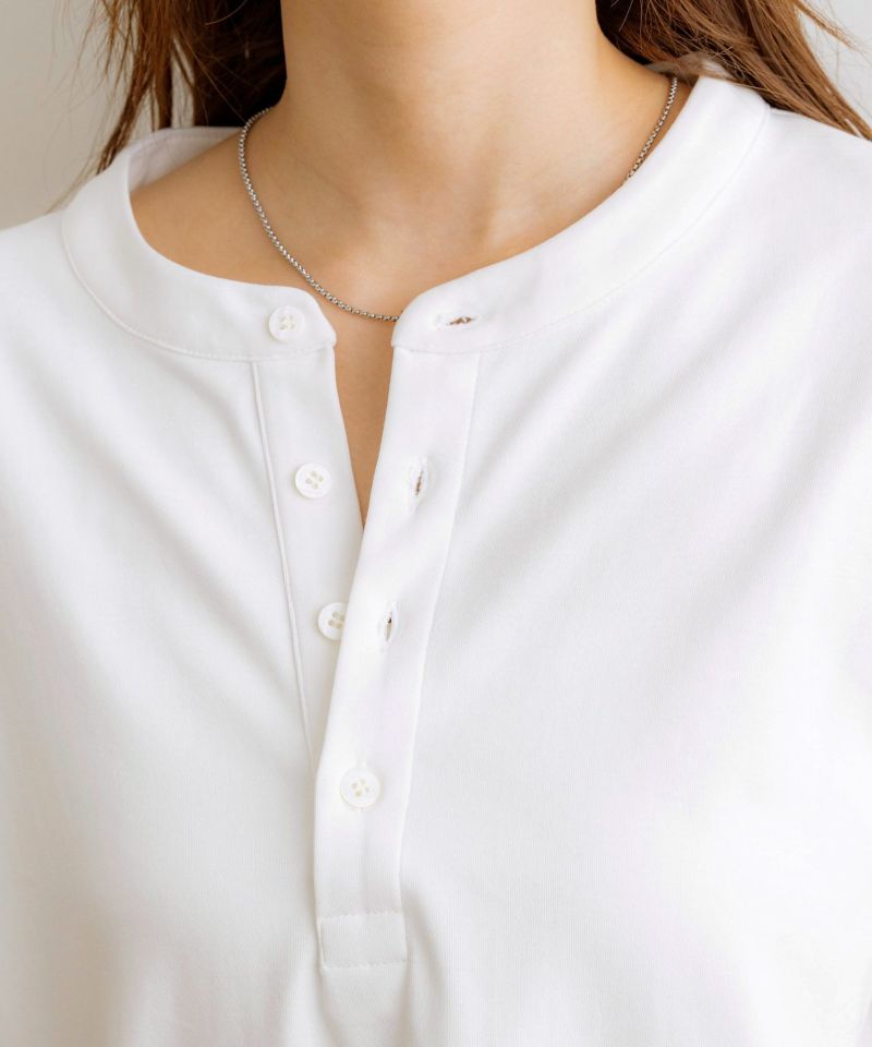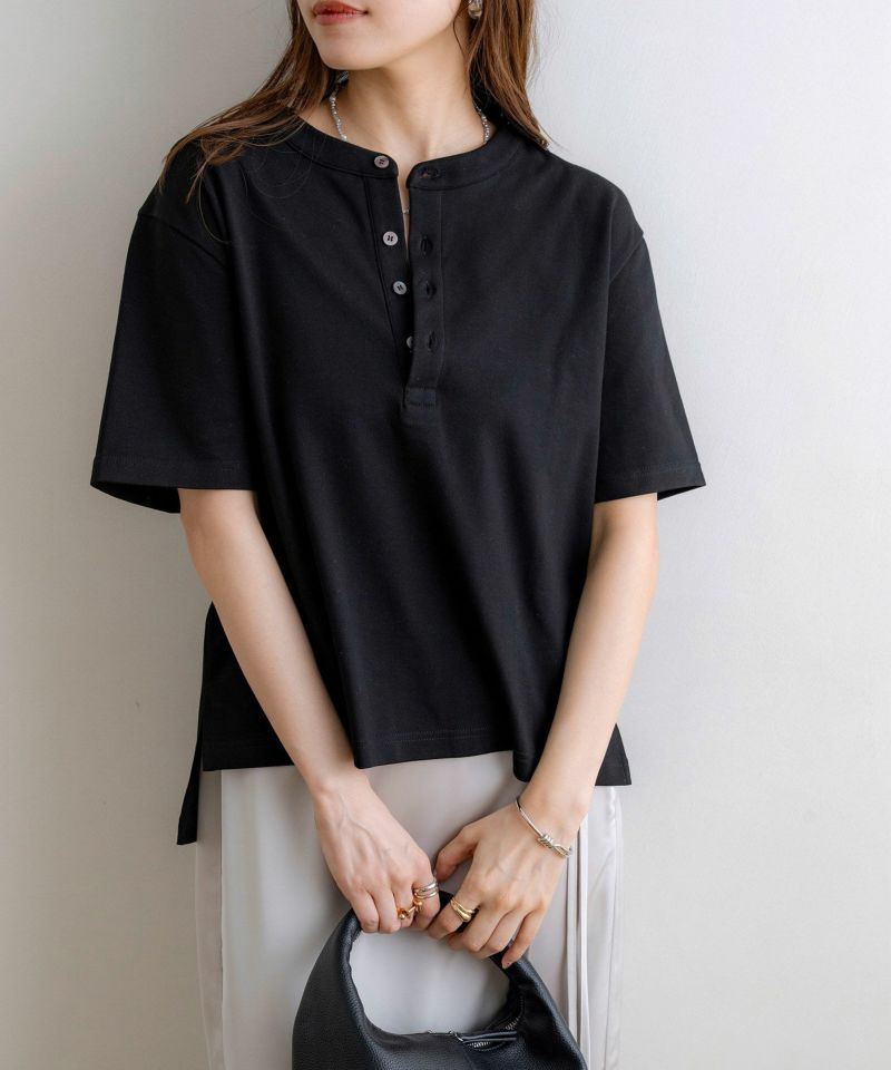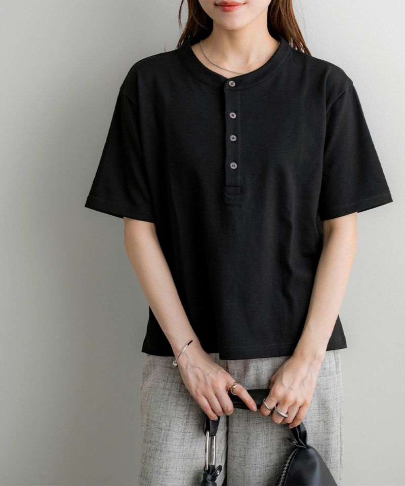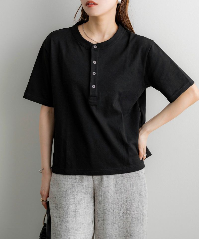 《accoさんコラボ》ストレッチコットンヘンリーネックTシャツ