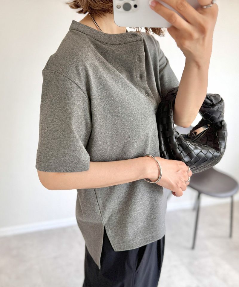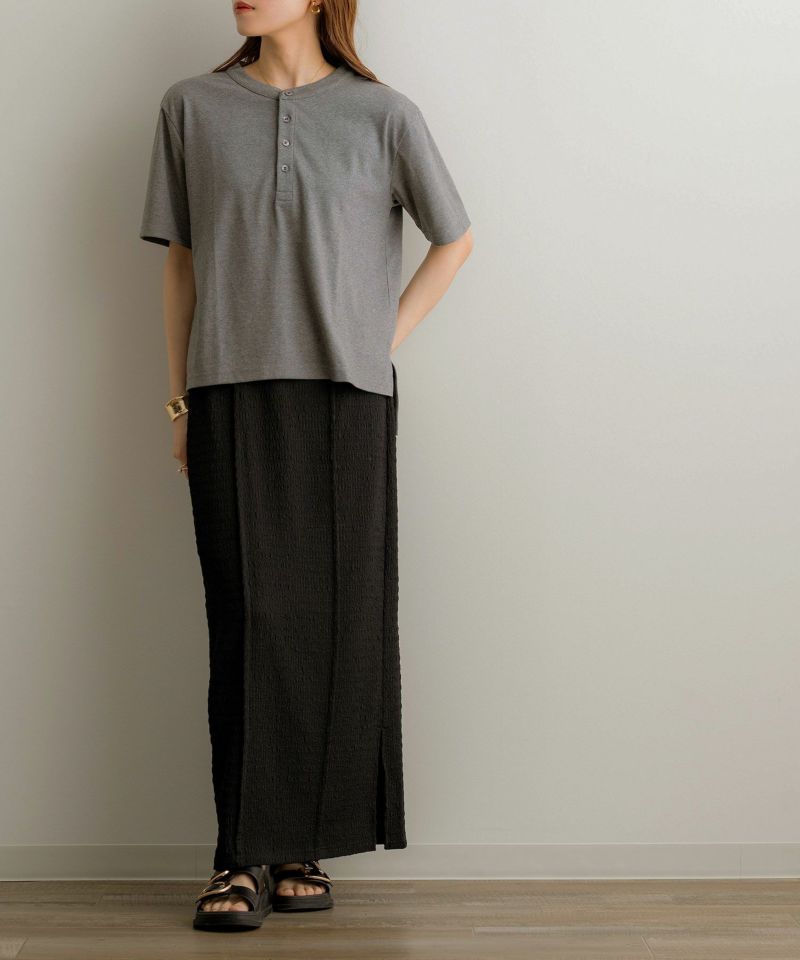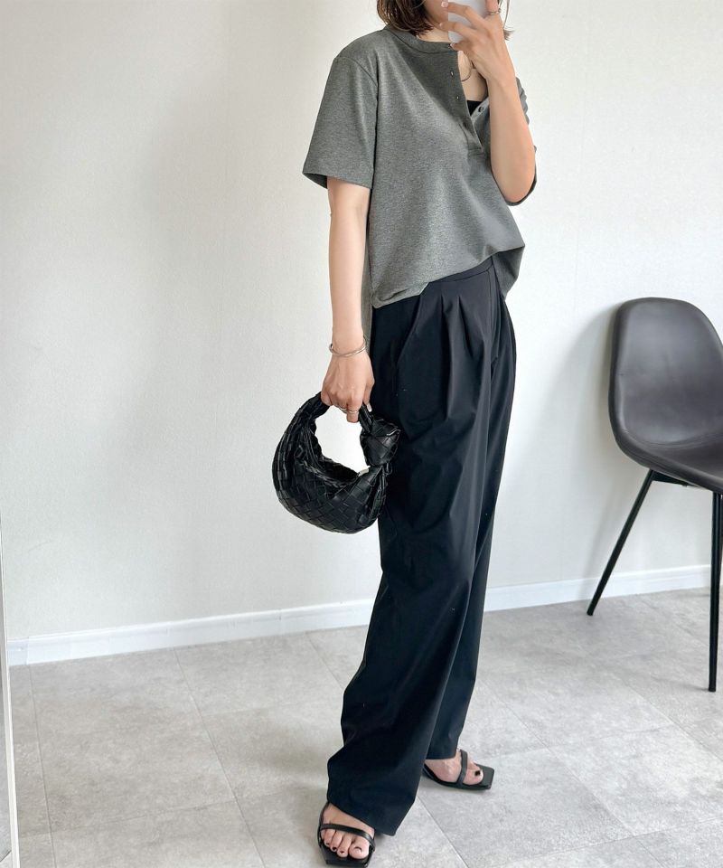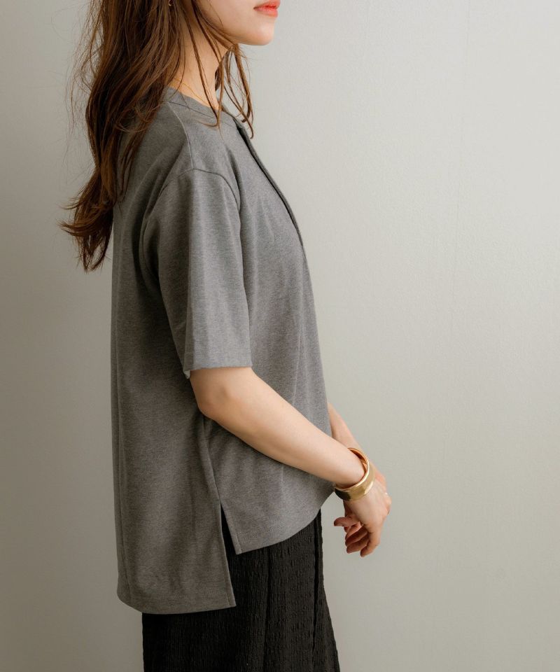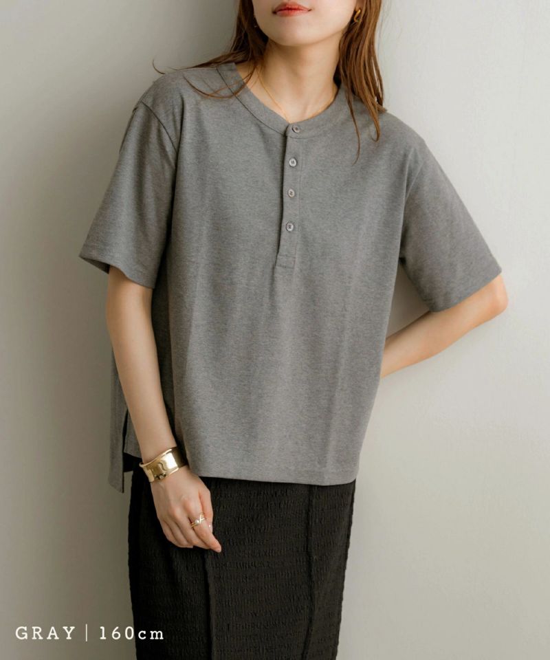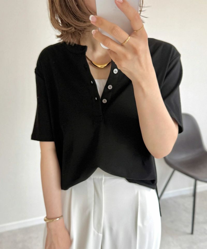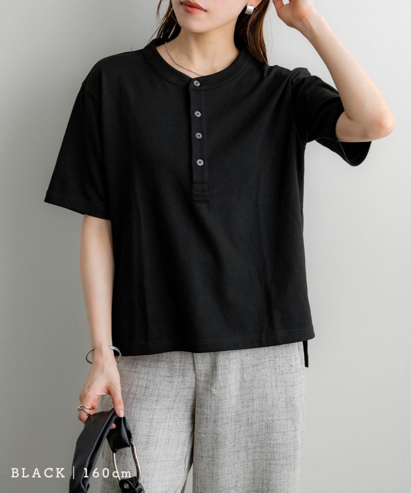 《accoさんコラボ》ストレッチコットンヘンリーネックTシャツ