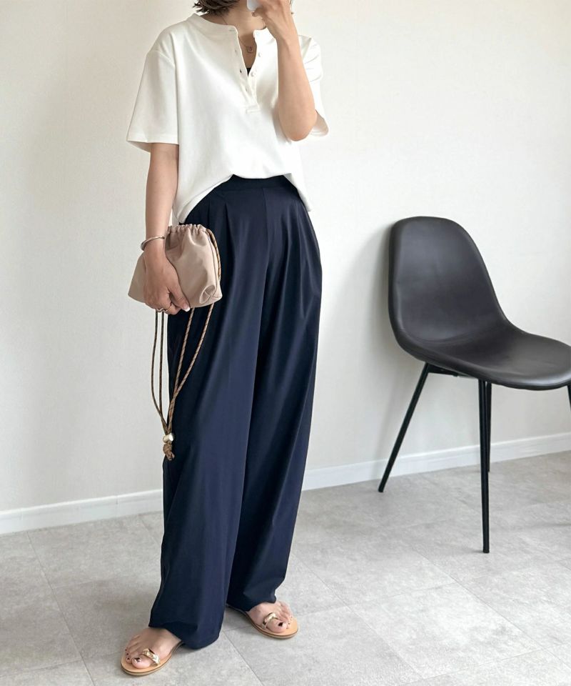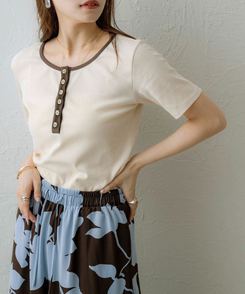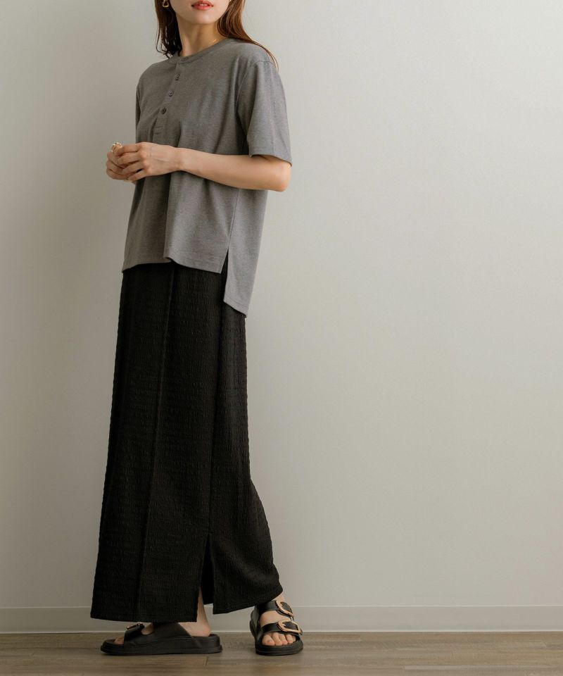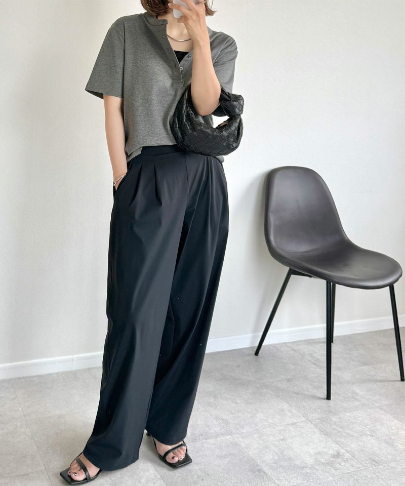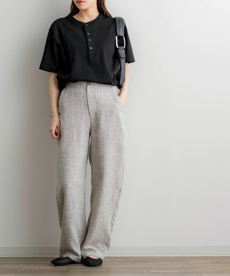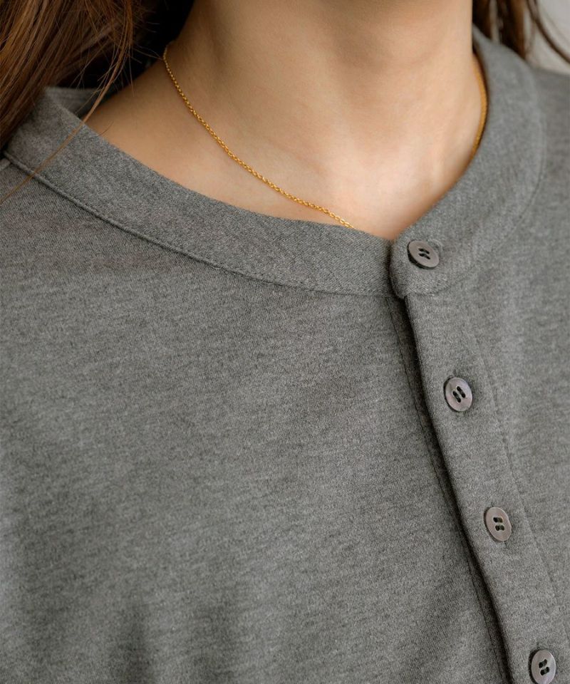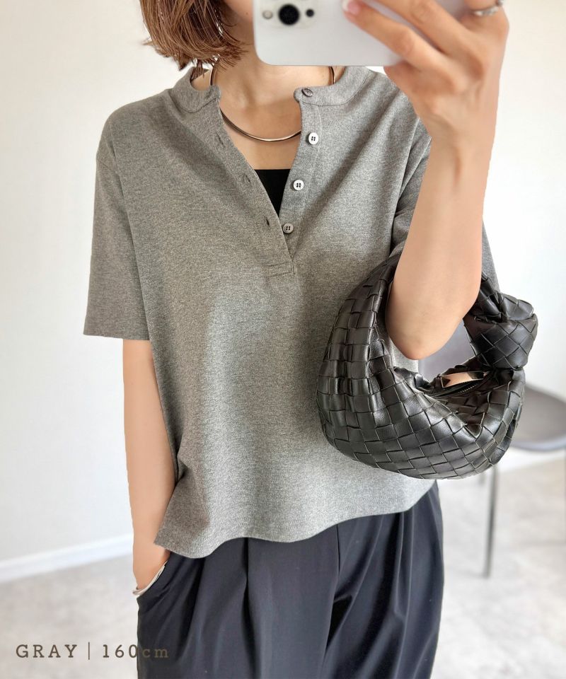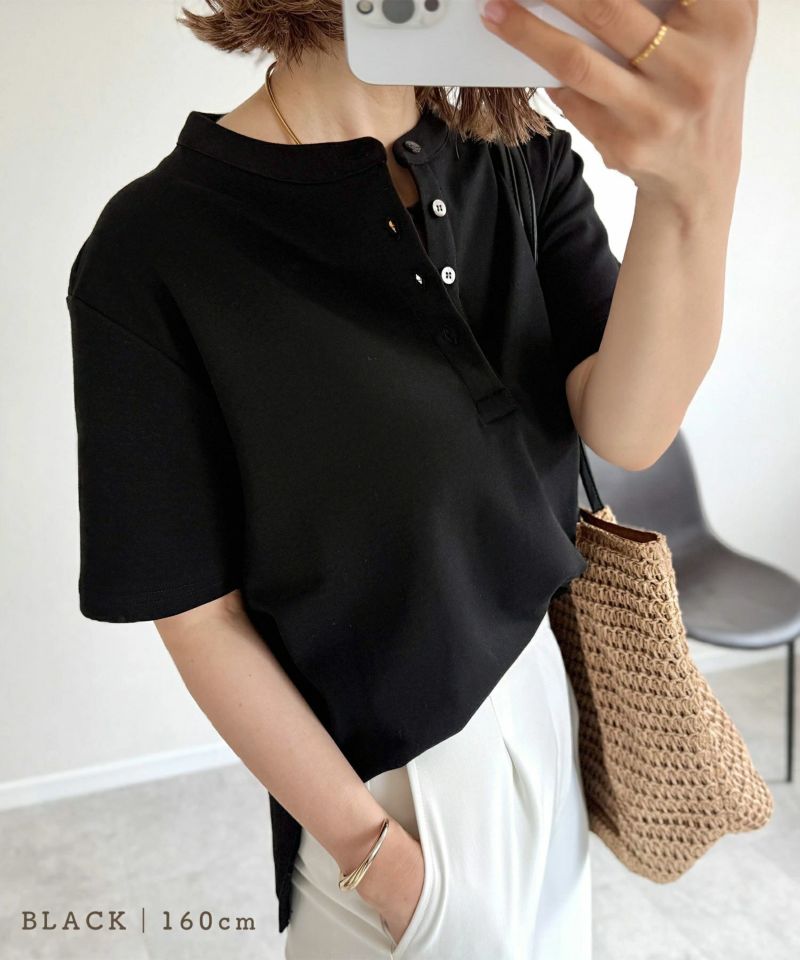 《accoさんコラボ》ストレッチコットンヘンリーネックTシャツ