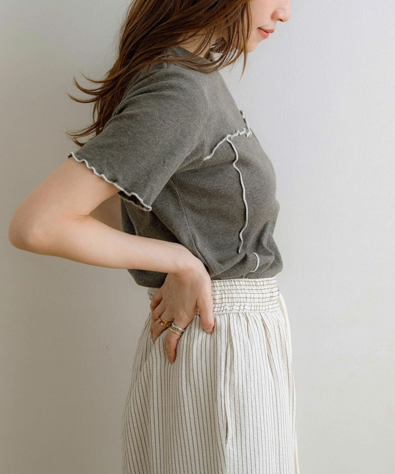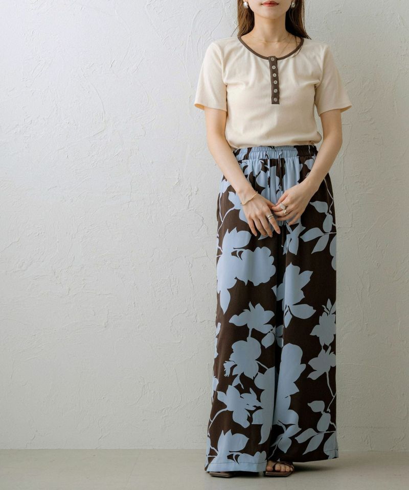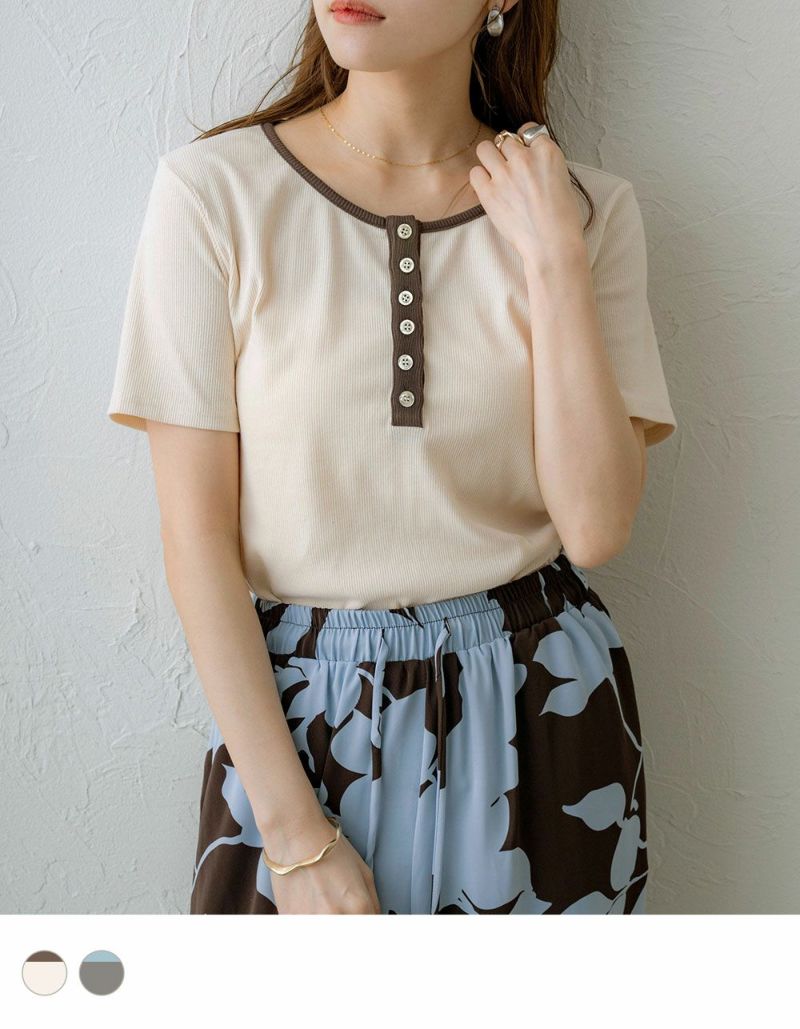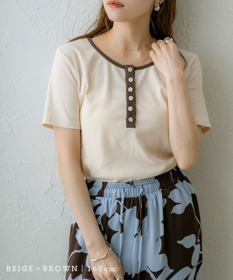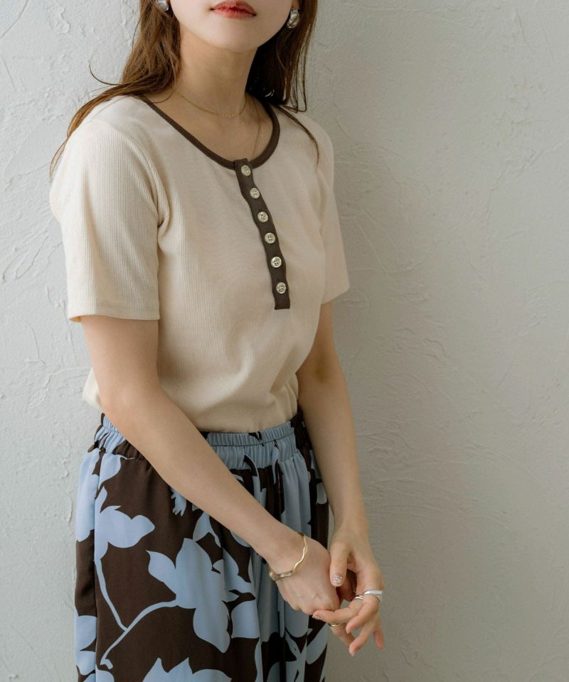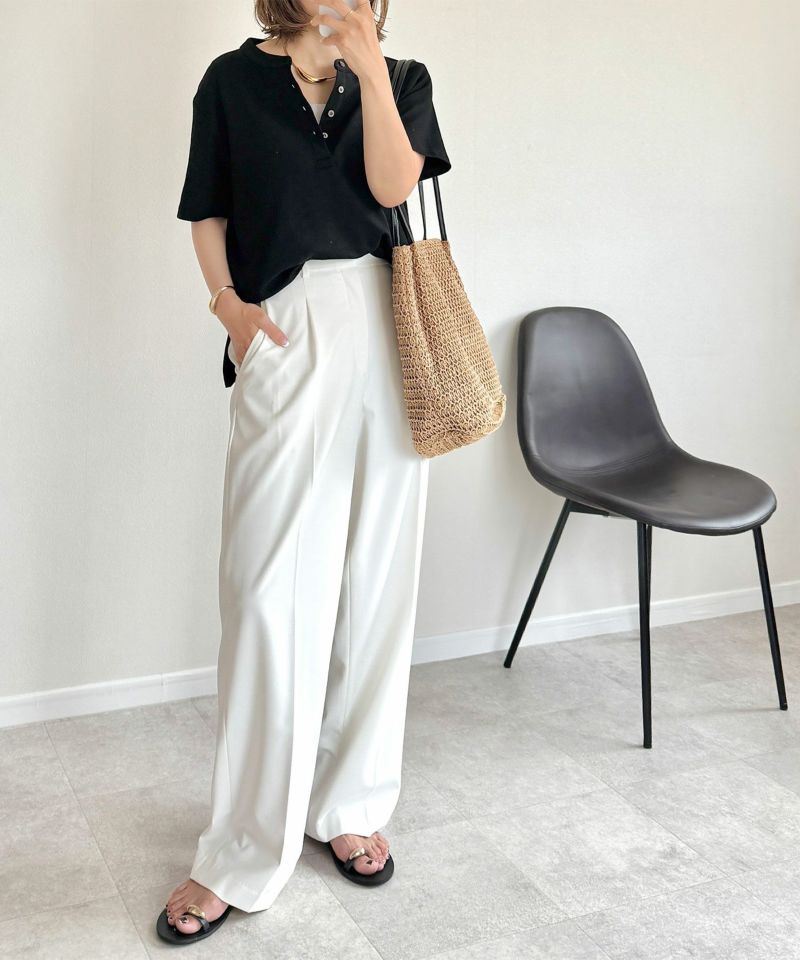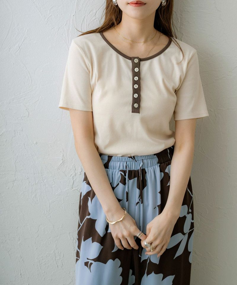 《accoさんコラボ》ストレッチコットンヘンリーネックTシャツ