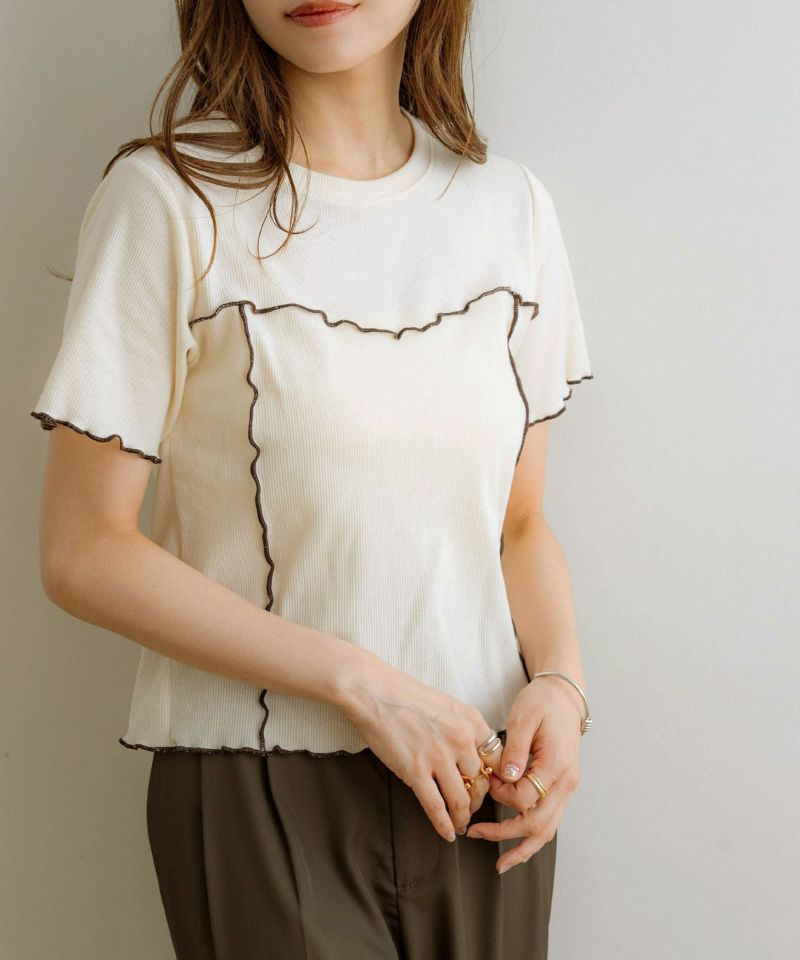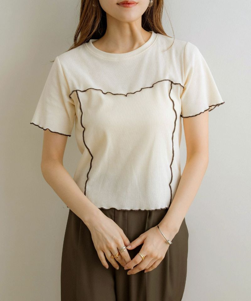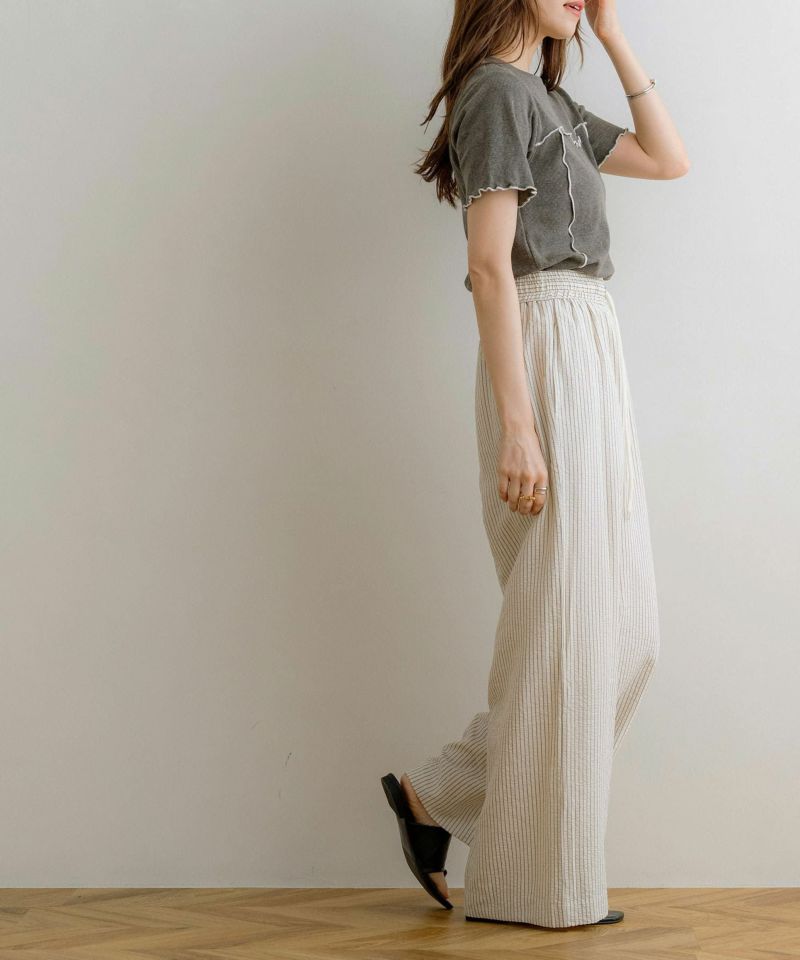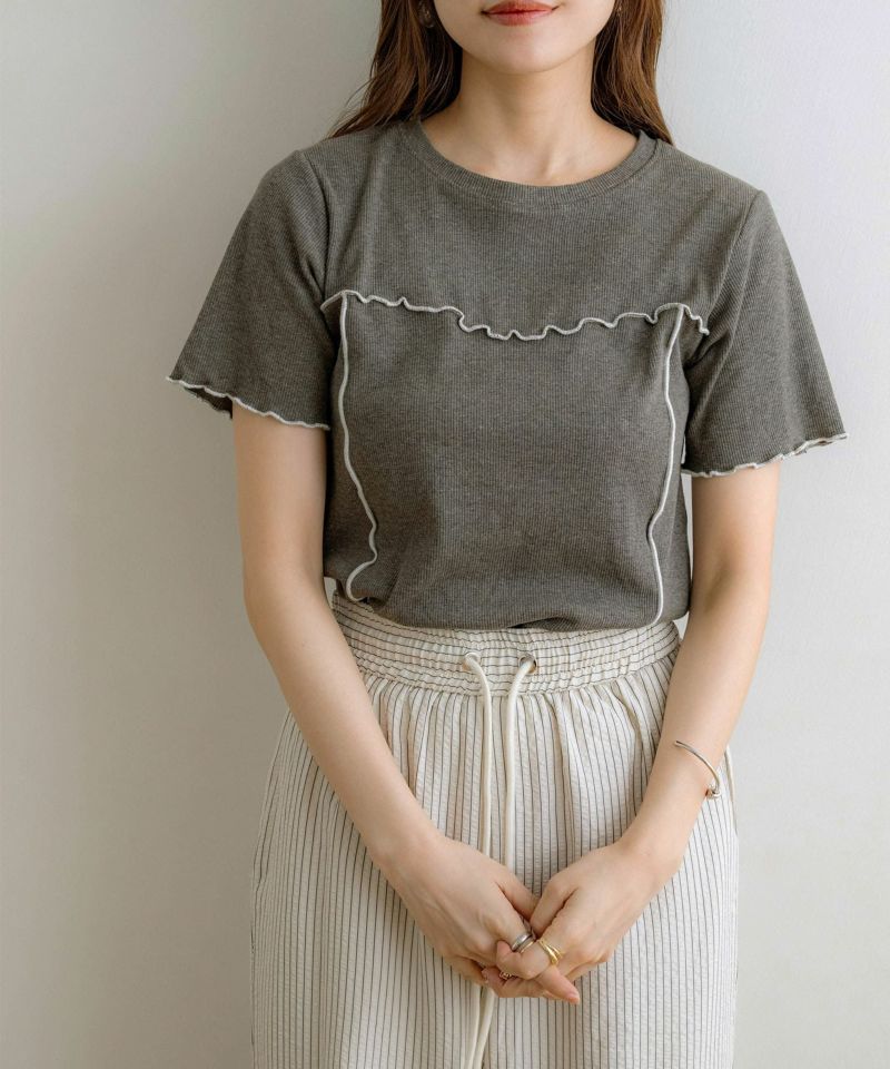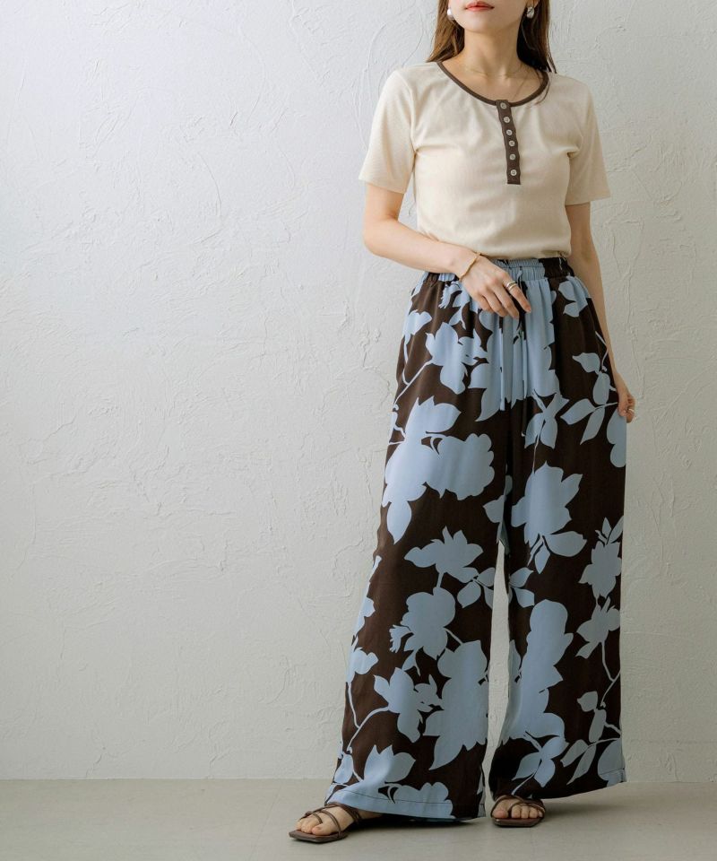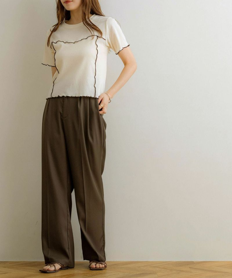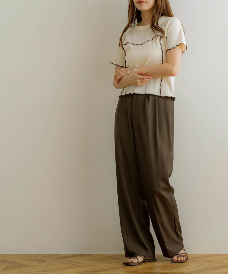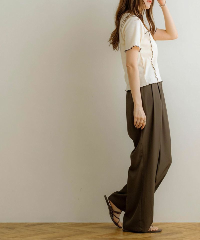 《accoさんコラボ》ストレッチコットンヘンリーネックTシャツ