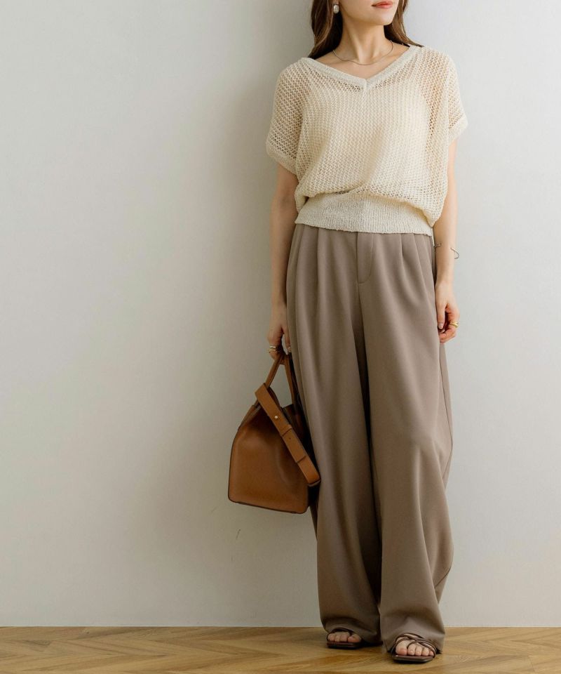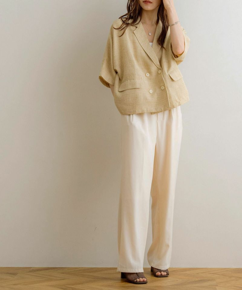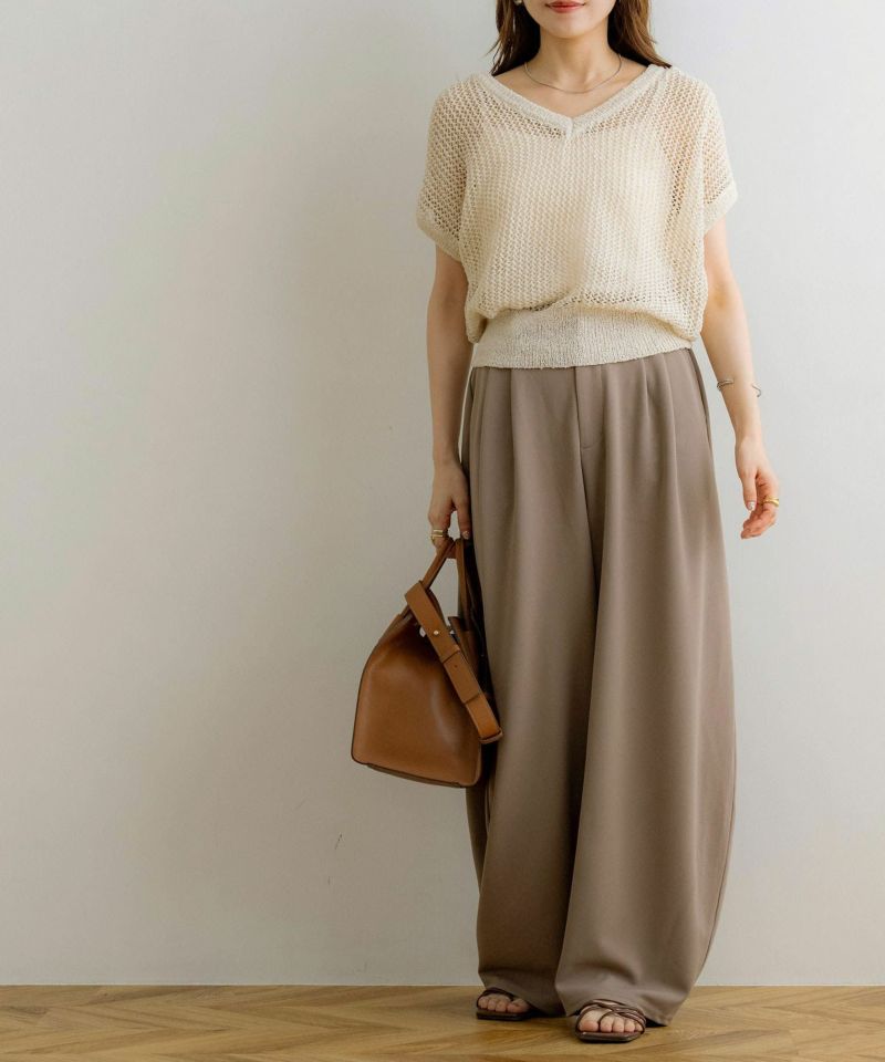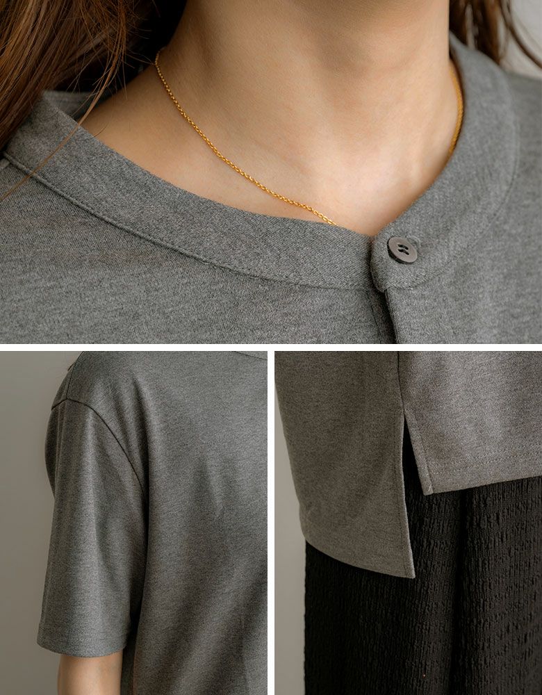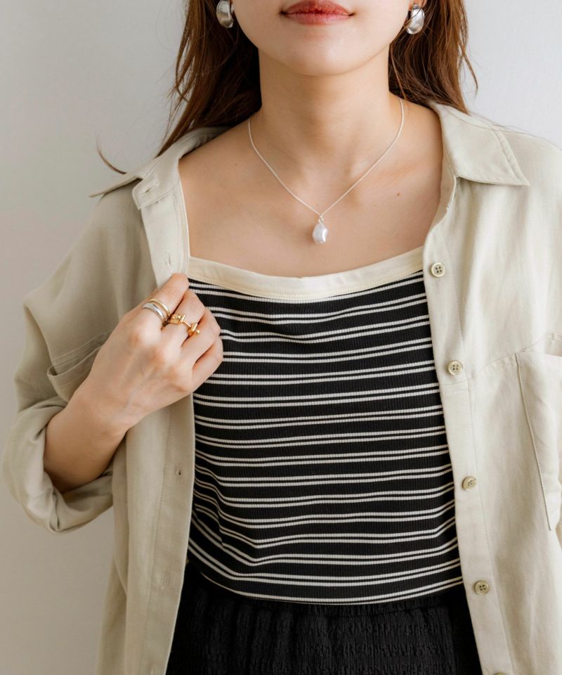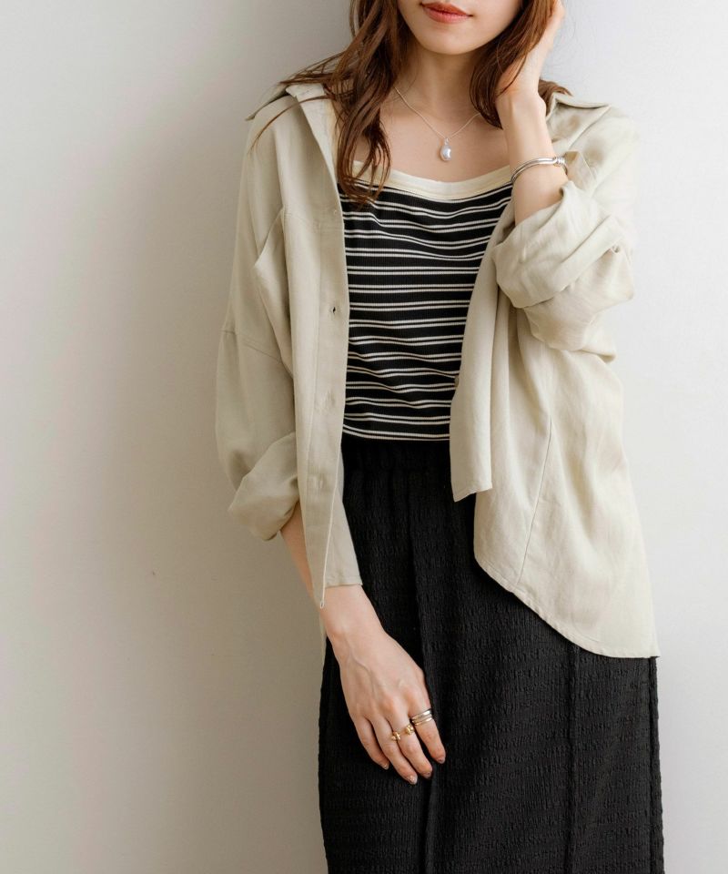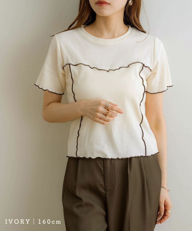 《accoさんコラボ》ストレッチコットンヘンリーネックTシャツ