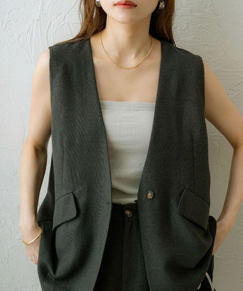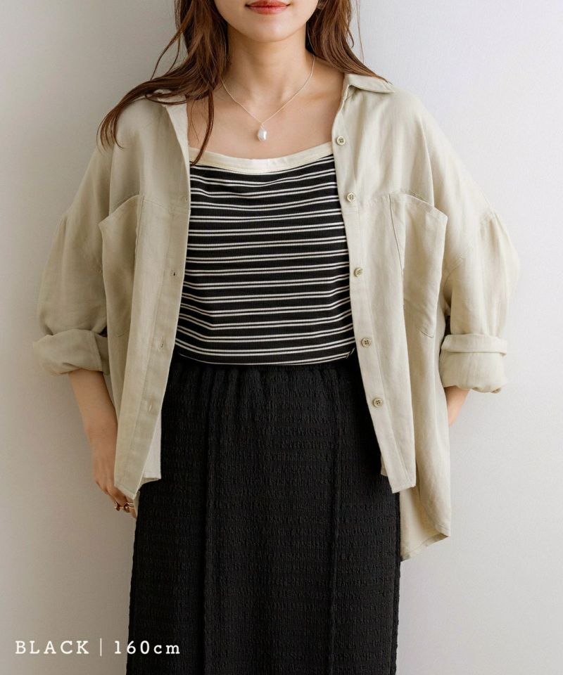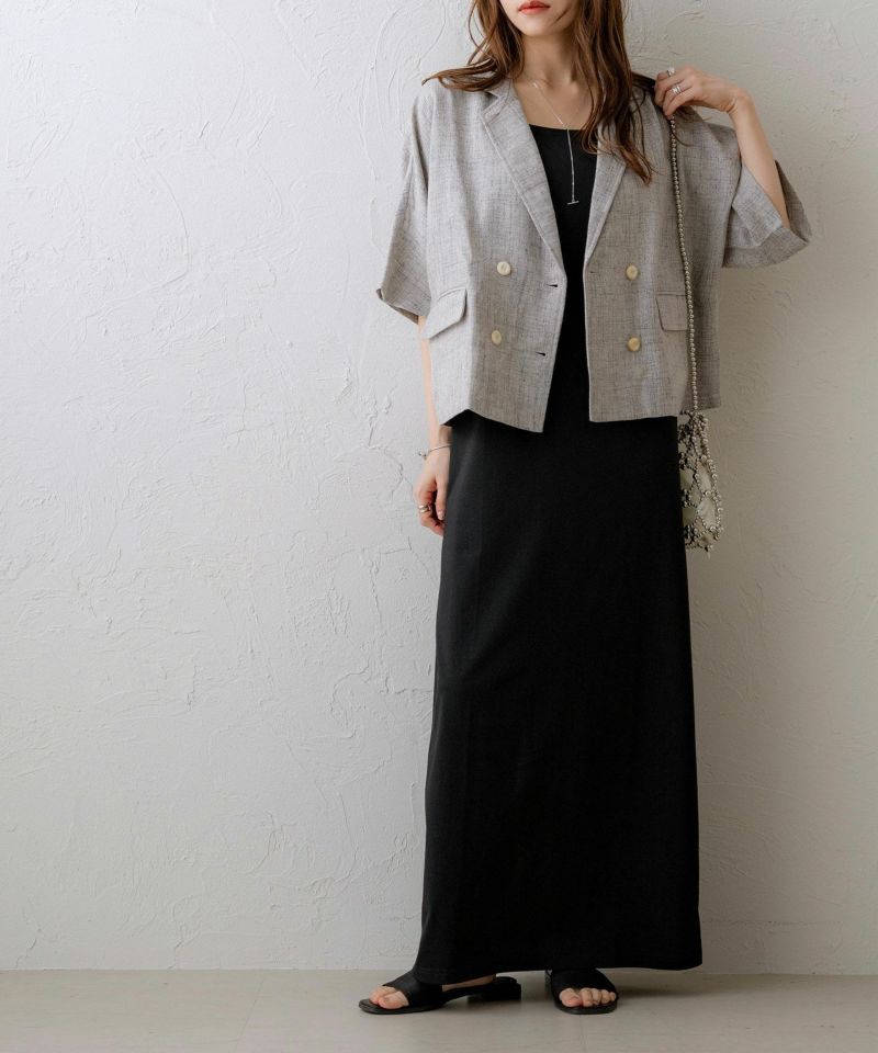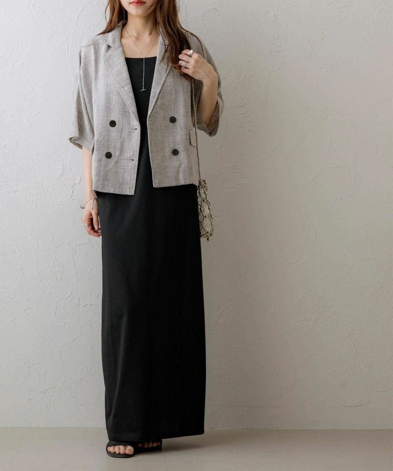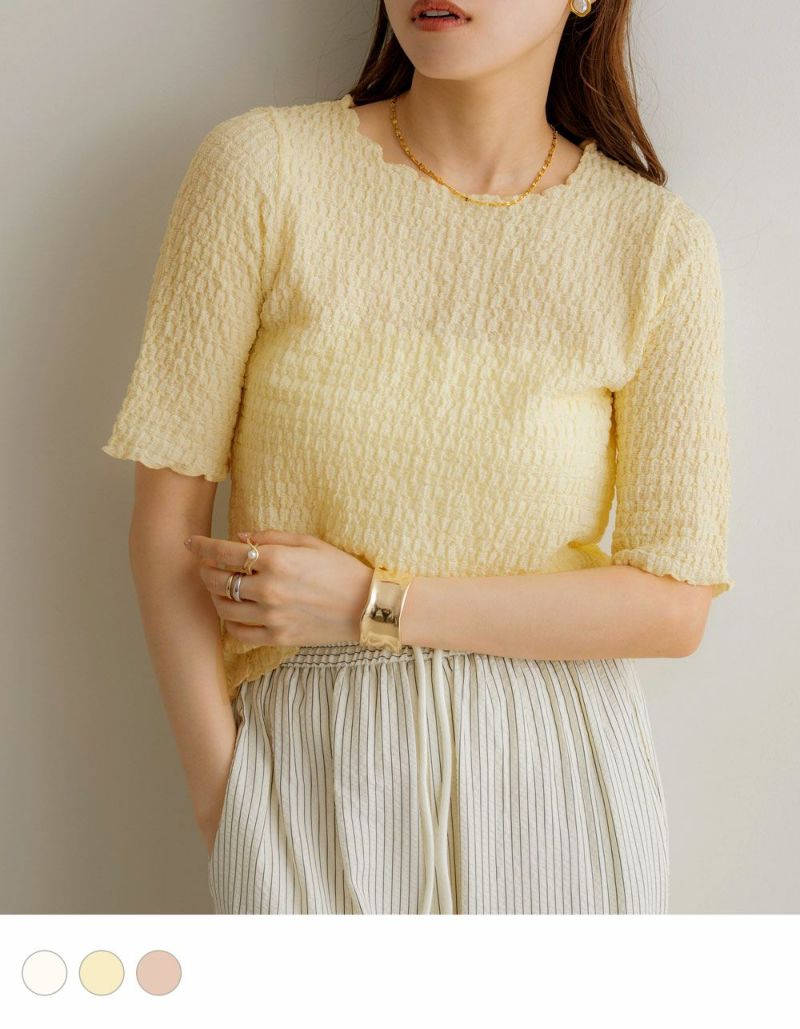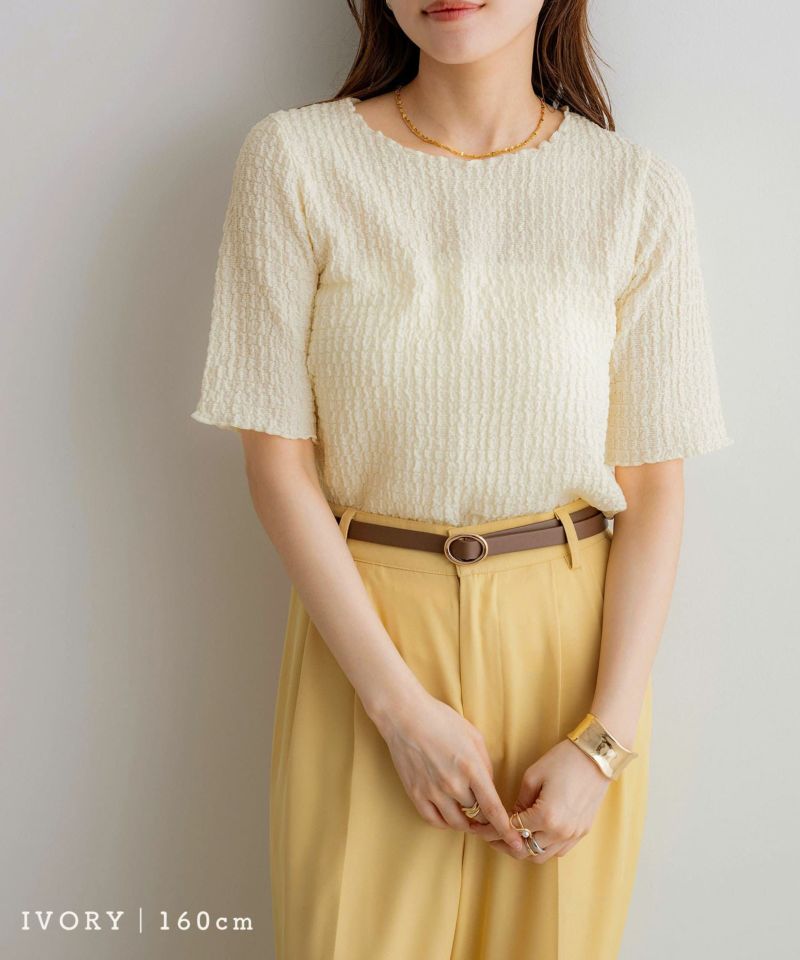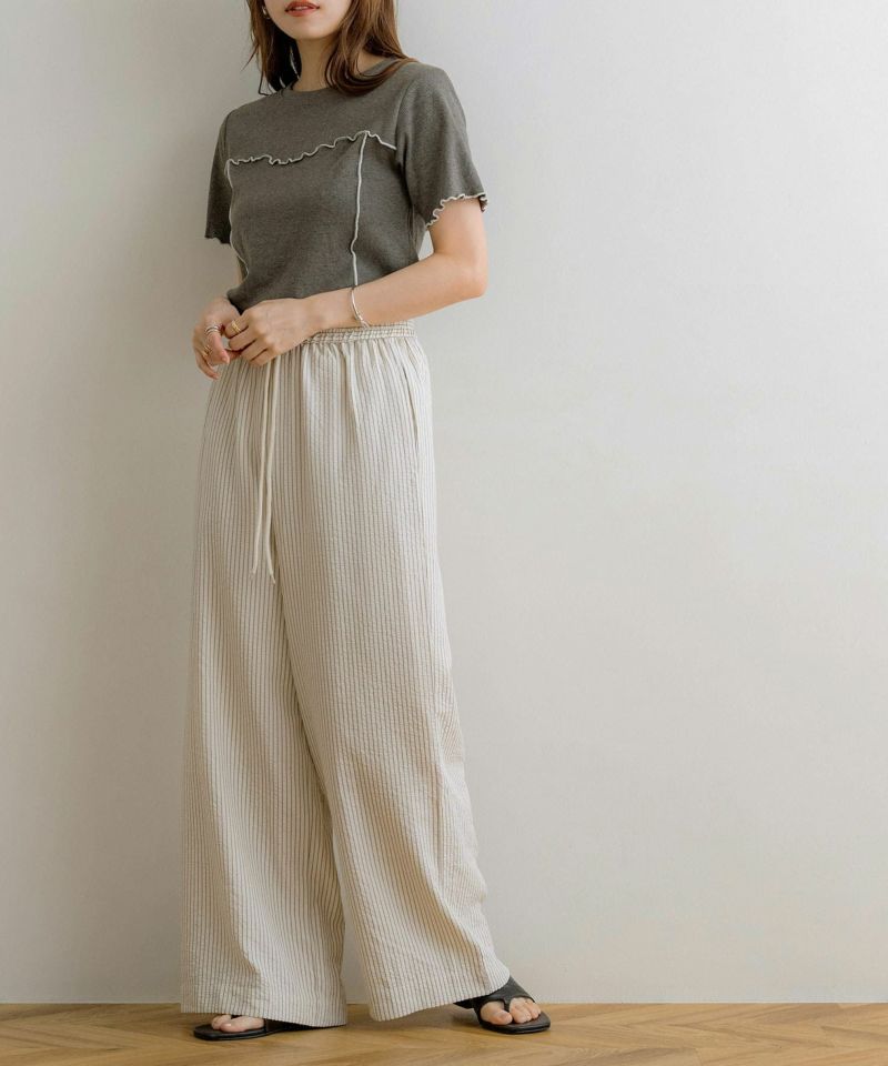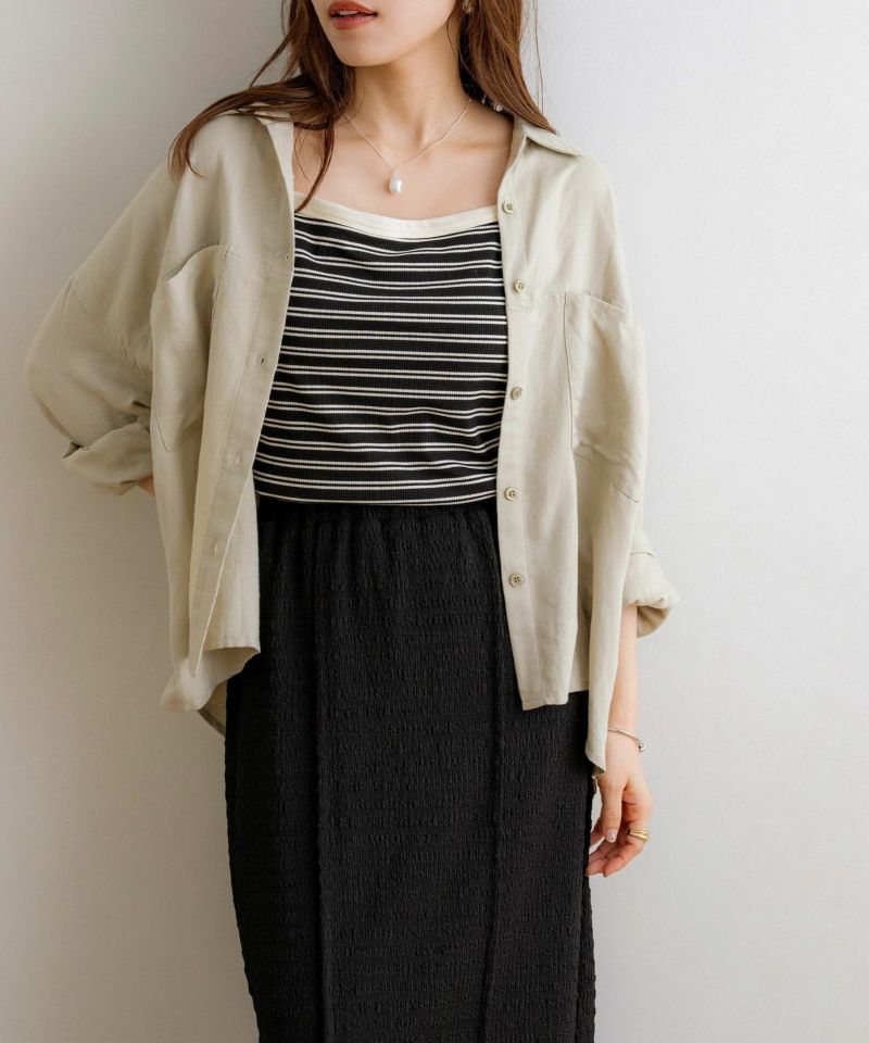 《accoさんコラボ》ストレッチコットンヘンリーネックTシャツ