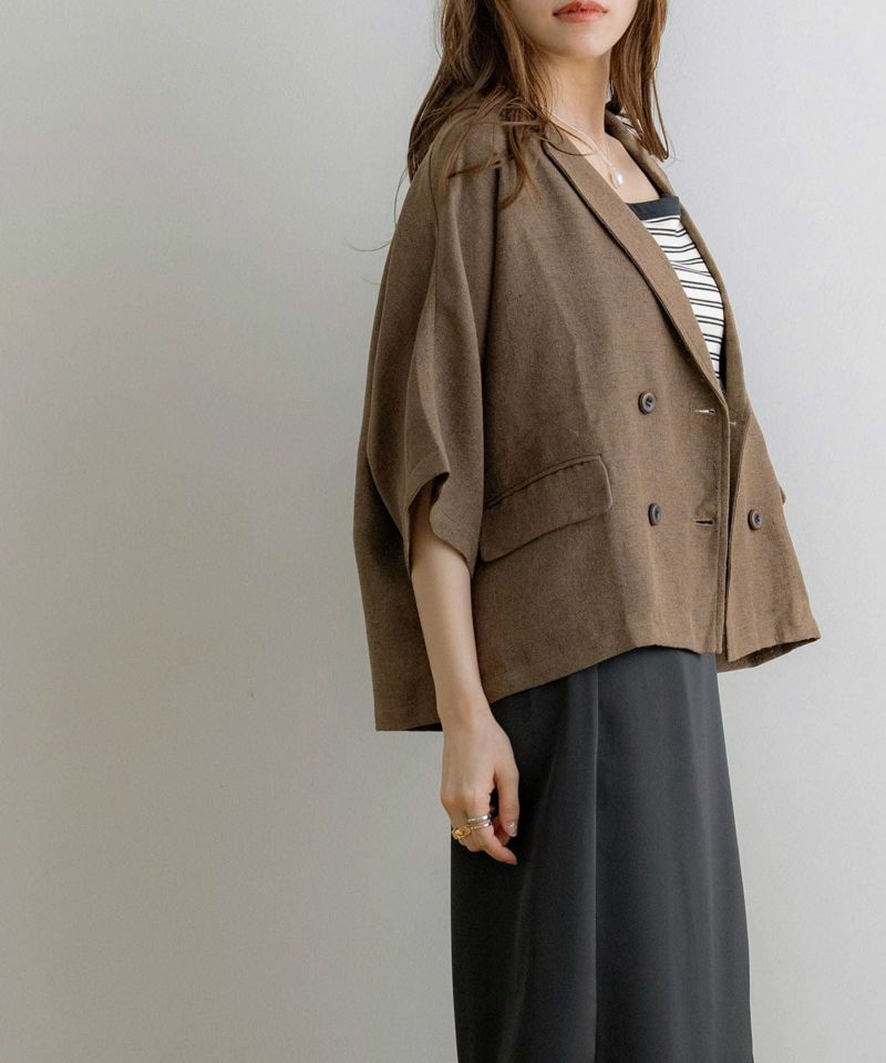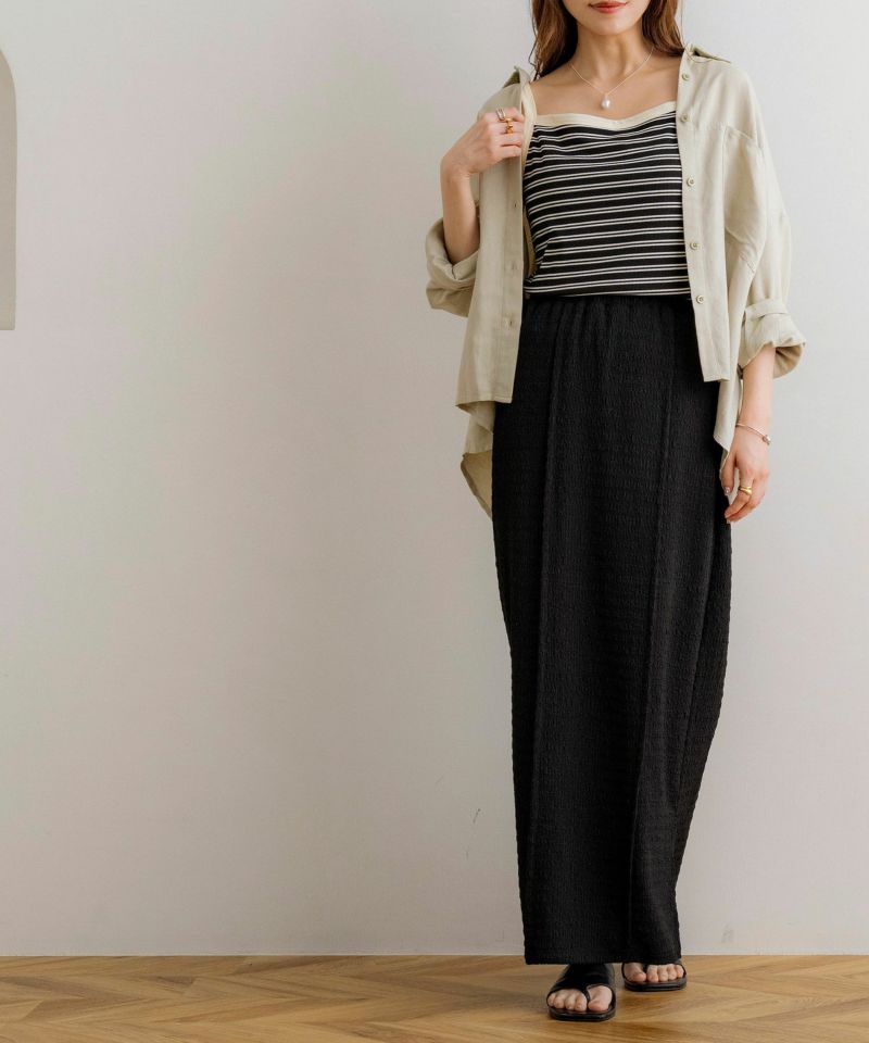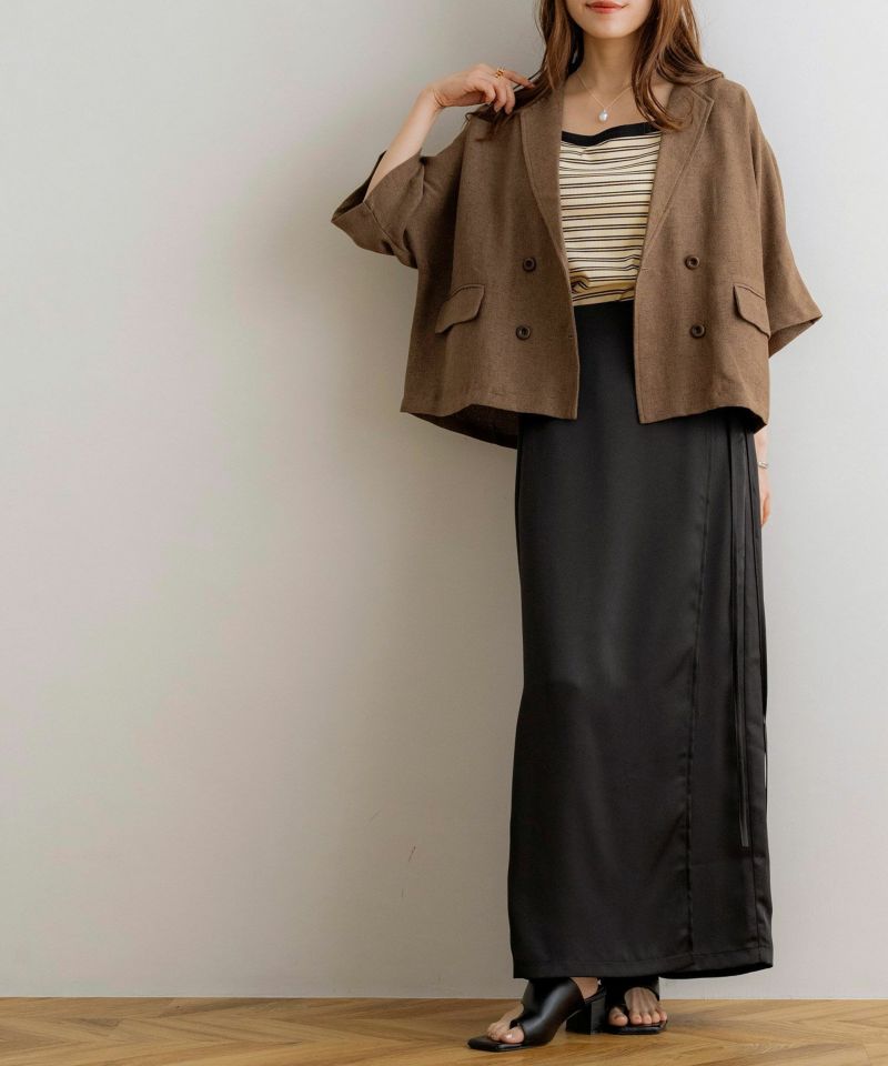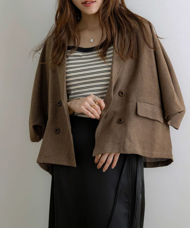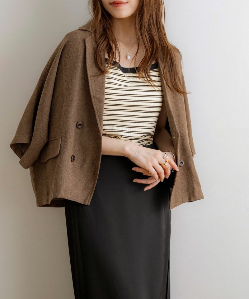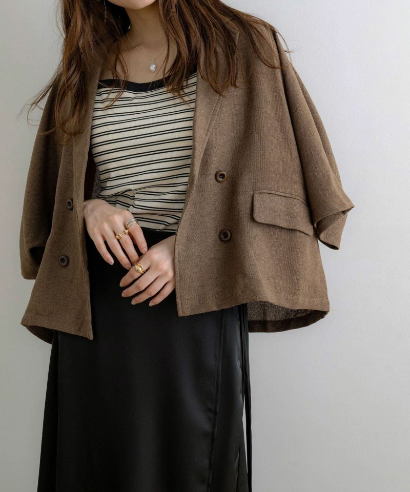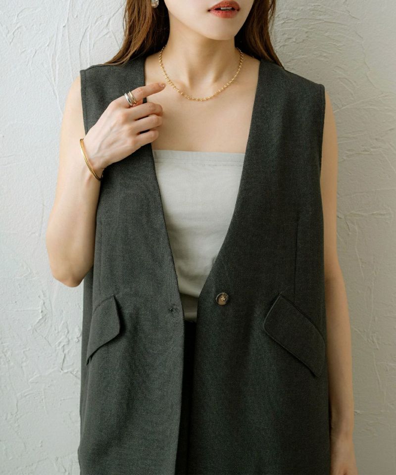 《accoさんコラボ》ストレッチコットンヘンリーネックTシャツ