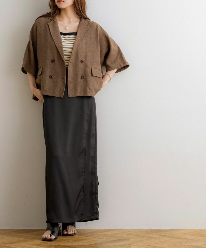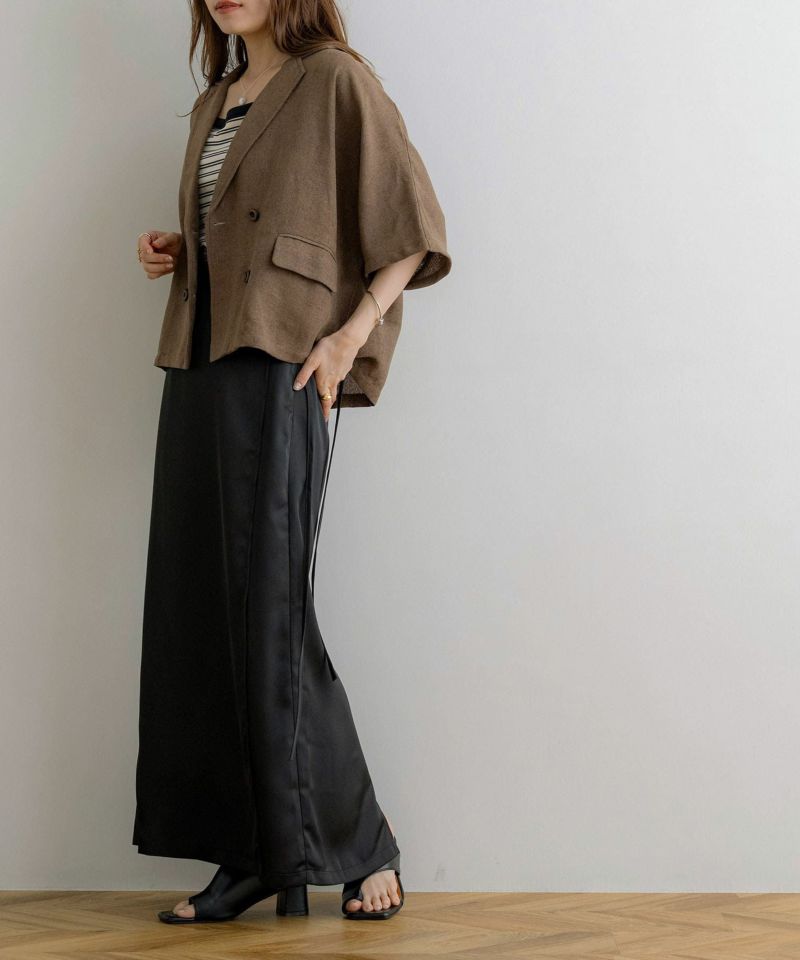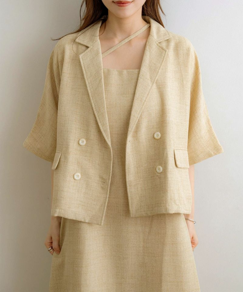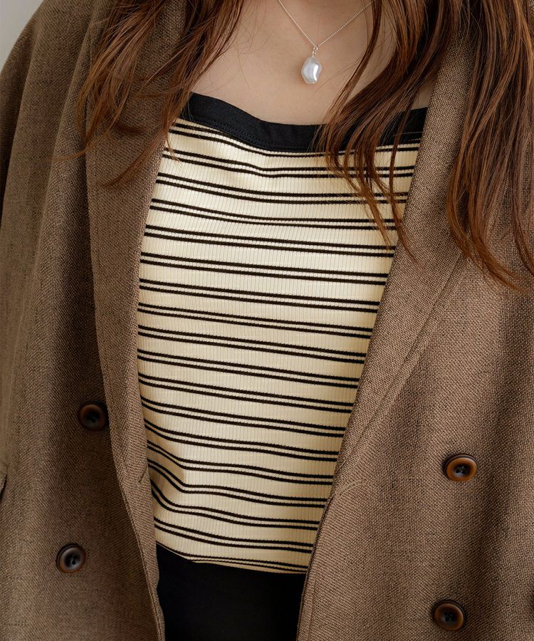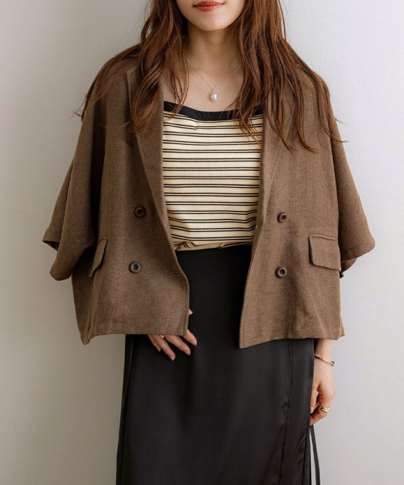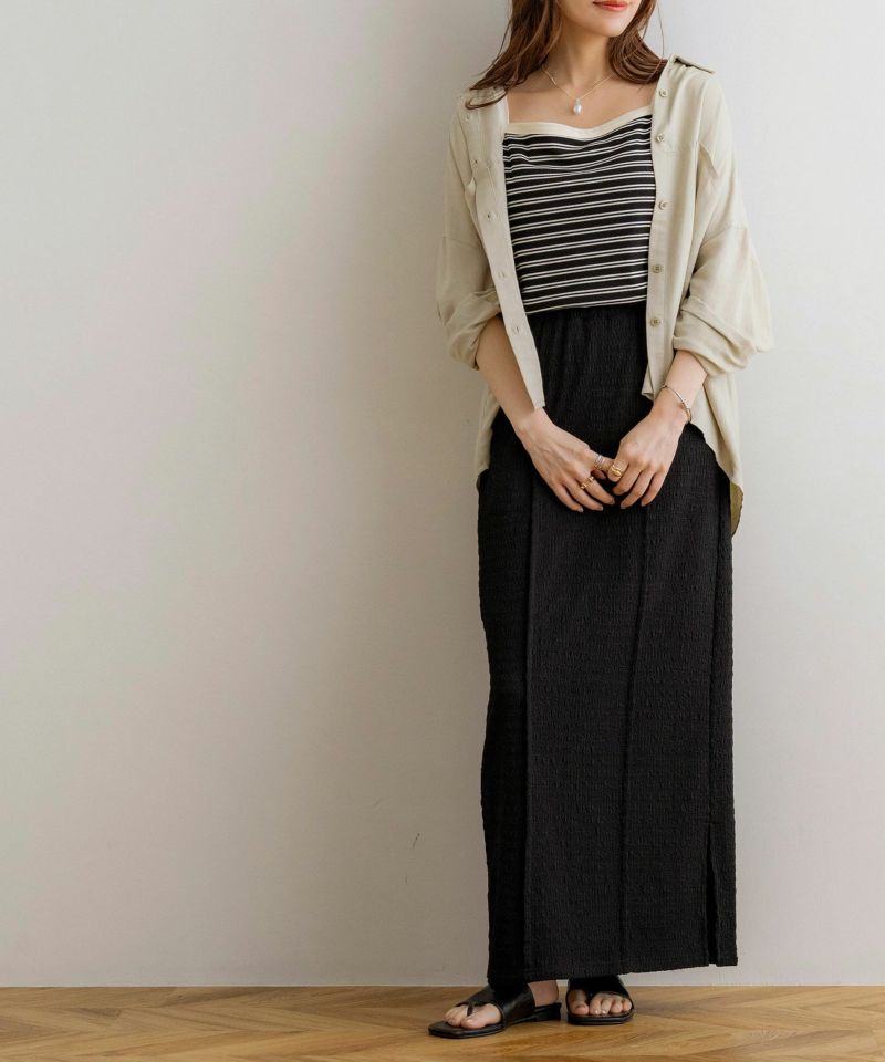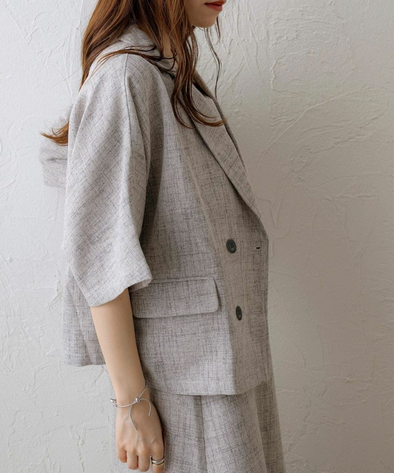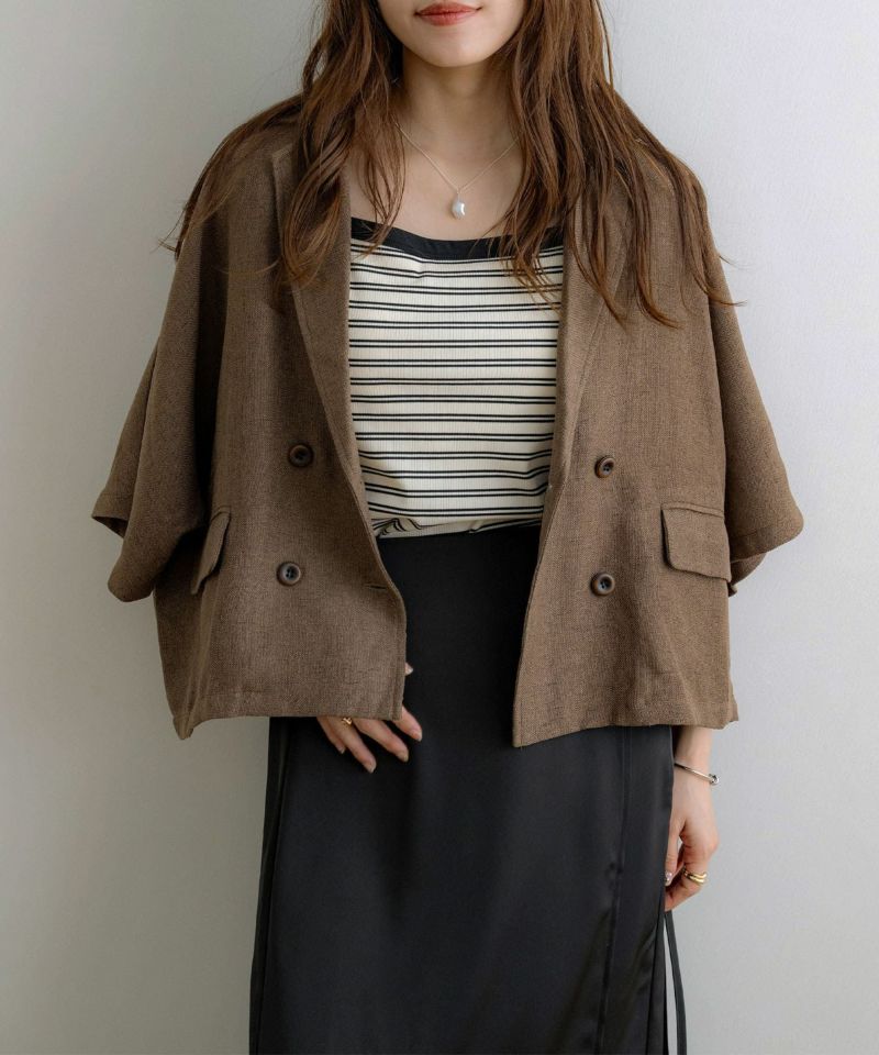 《accoさんコラボ》ストレッチコットンヘンリーネックTシャツ