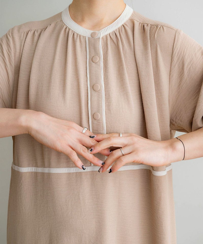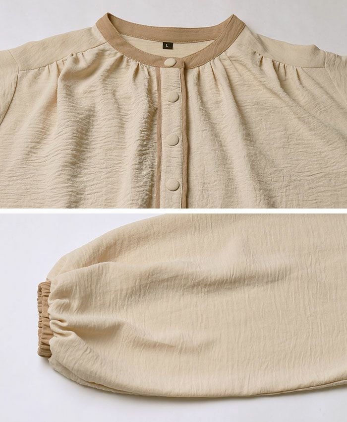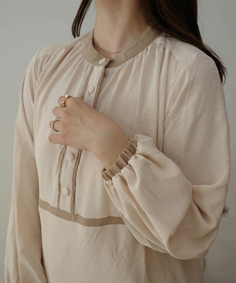 襟付きボタンデザイントップス(レディース)【mimi by NOAHL】