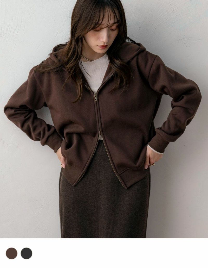 シンプルでどんなコーデにも合わせやすい裏起毛パーカー。