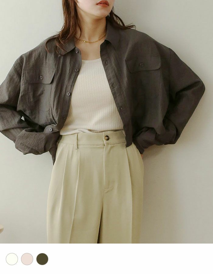 ショート丈がバランスの良いシアーシャツ。絶妙なくすみカラーの3色がオトナに着られる1着です◎ボトムを選ばず、ボタンを開ければワンピースなどの羽織にもぴったりな1枚持っておくとコーデの幅が広がる1着♪