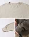 袖のハートモチーフ刺繍がトレンドライクなミドル丈トレーナー。ワッフル素材のぽこぽことした素材感が表情のある1着です。ミドル丈ですっきりと着られ、楽ちんな着心地ながらも旬なスタイルに♪デイリーからお出かけまで着られます◎