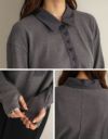 ワッフルの生地感と襟の異素材がポイントのオトナ可愛いシャツ。