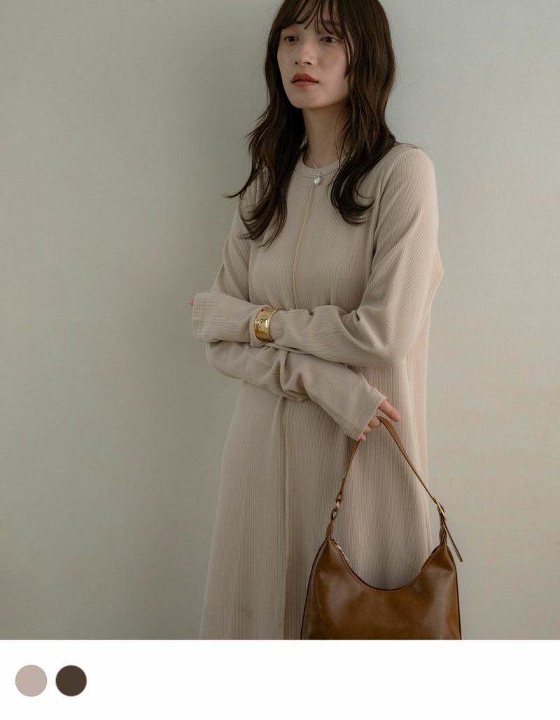 表情のあるリブ素材に、すとんと落ち感のあるシルエットがきれいなワンピース。