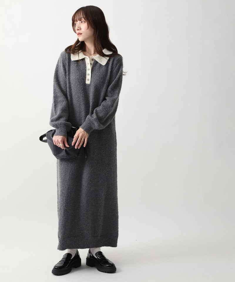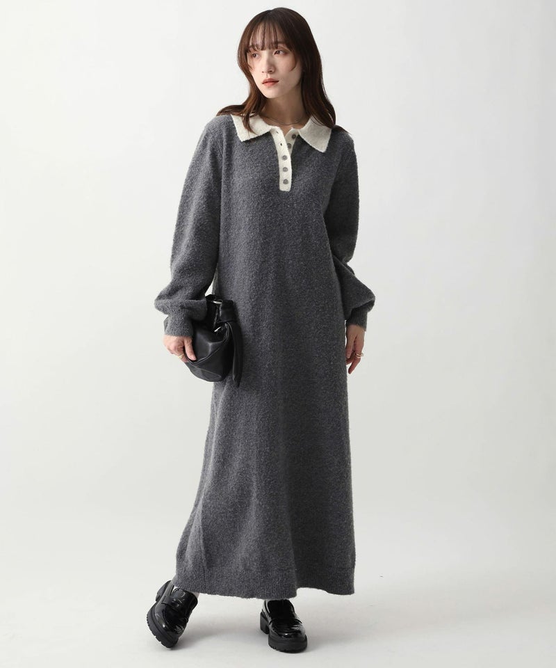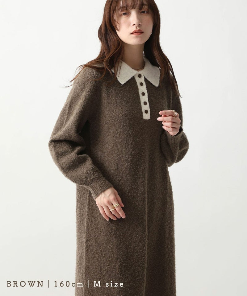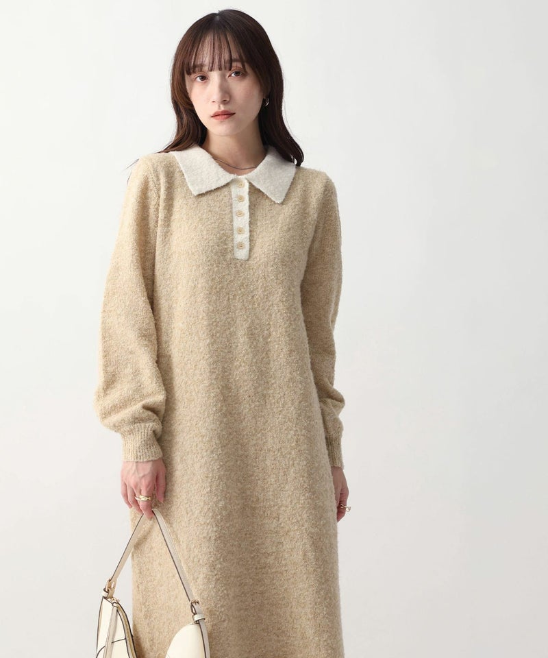 襟付きボタンデザインニットワンピース