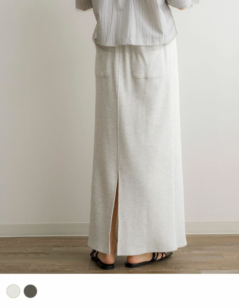 伸縮性があり、タイト過ぎないナローシルエットがラクチン&女性らしさもプラス◎