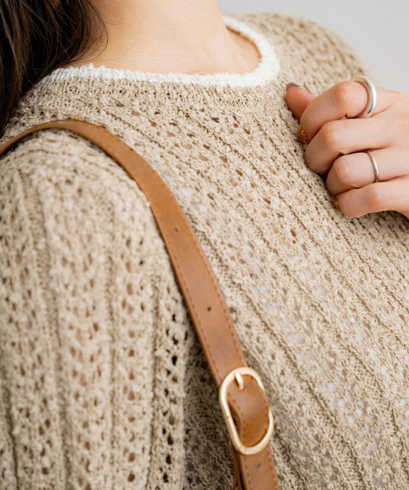 スキッパー透かし編みニットプルオーバー
