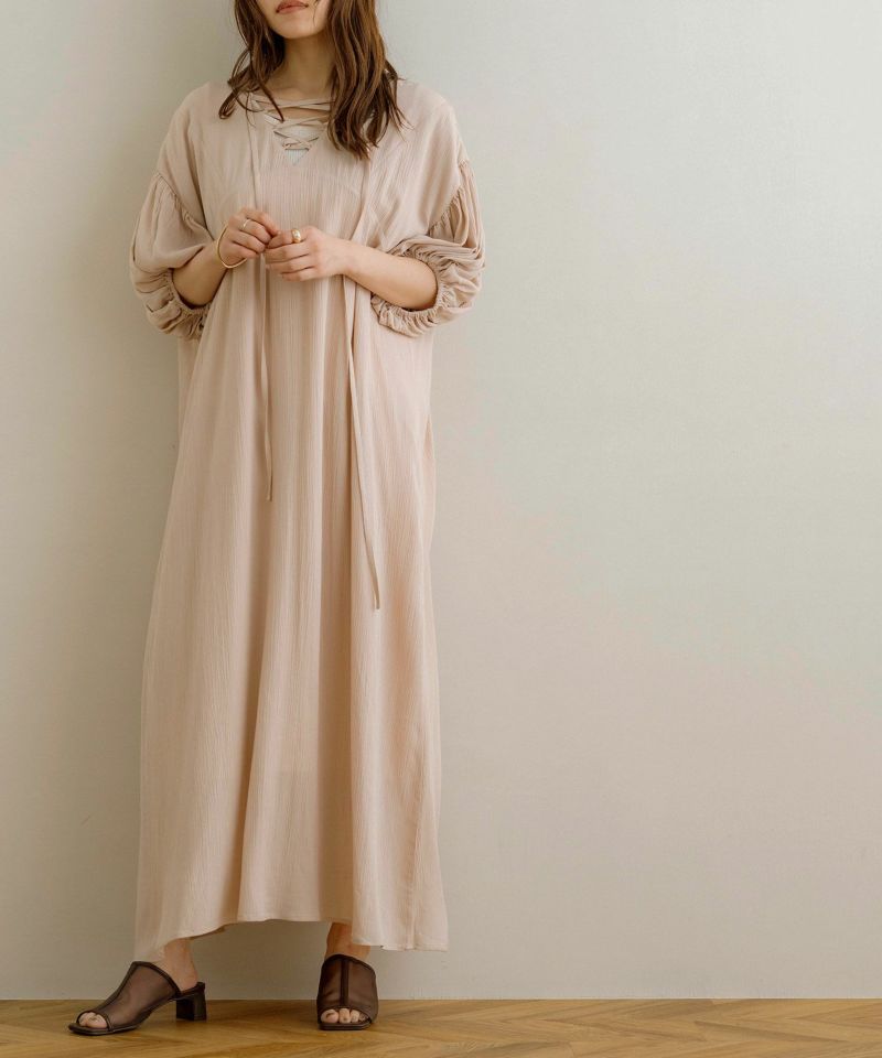 リネンタッチフロントタックワンピース