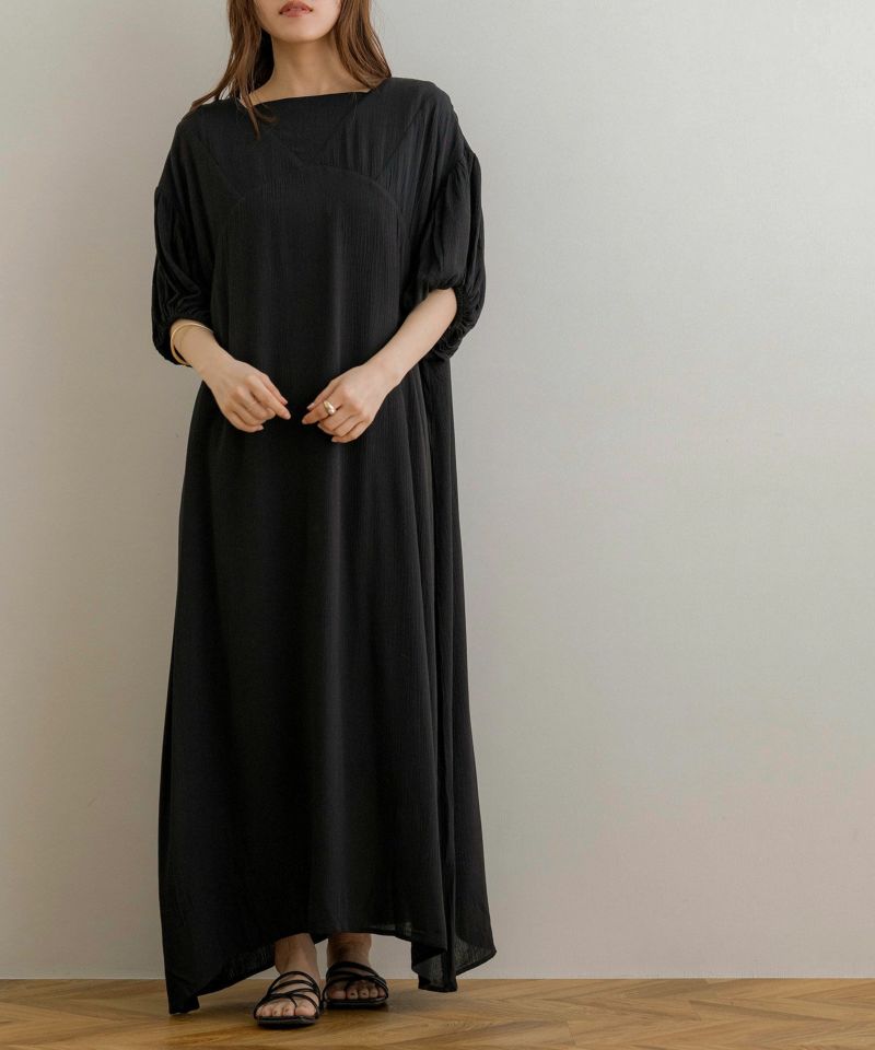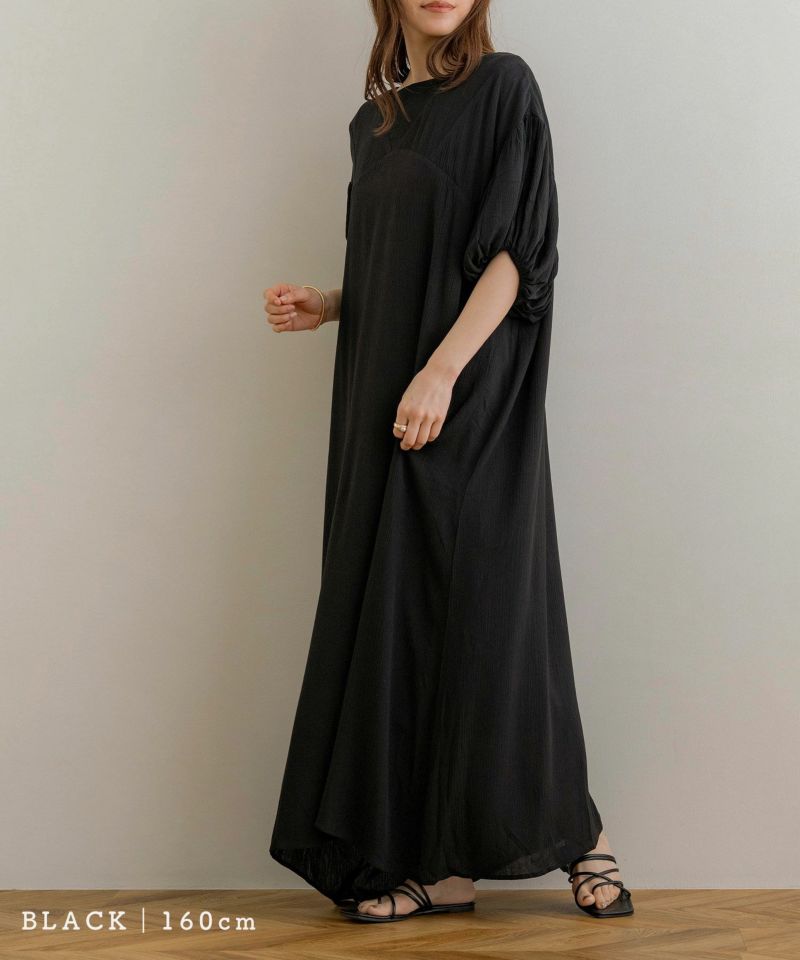 ハーフスリーブ2way楊柳ワンピース