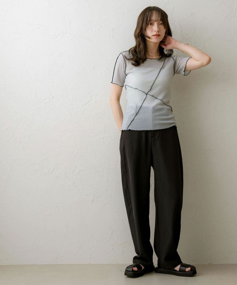 タックデザインストレッチカーブパンツ